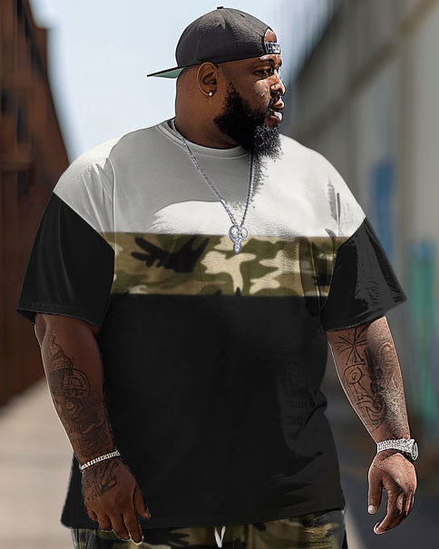 This men’s big size two-piece set is fashionable in a splicing style. Integrated the classic design into modern fashion, it creates a unique style. It is suitable for various casual occasions in summer and autumn. Multiple wearing methods can show its unique charm of classic and charming.