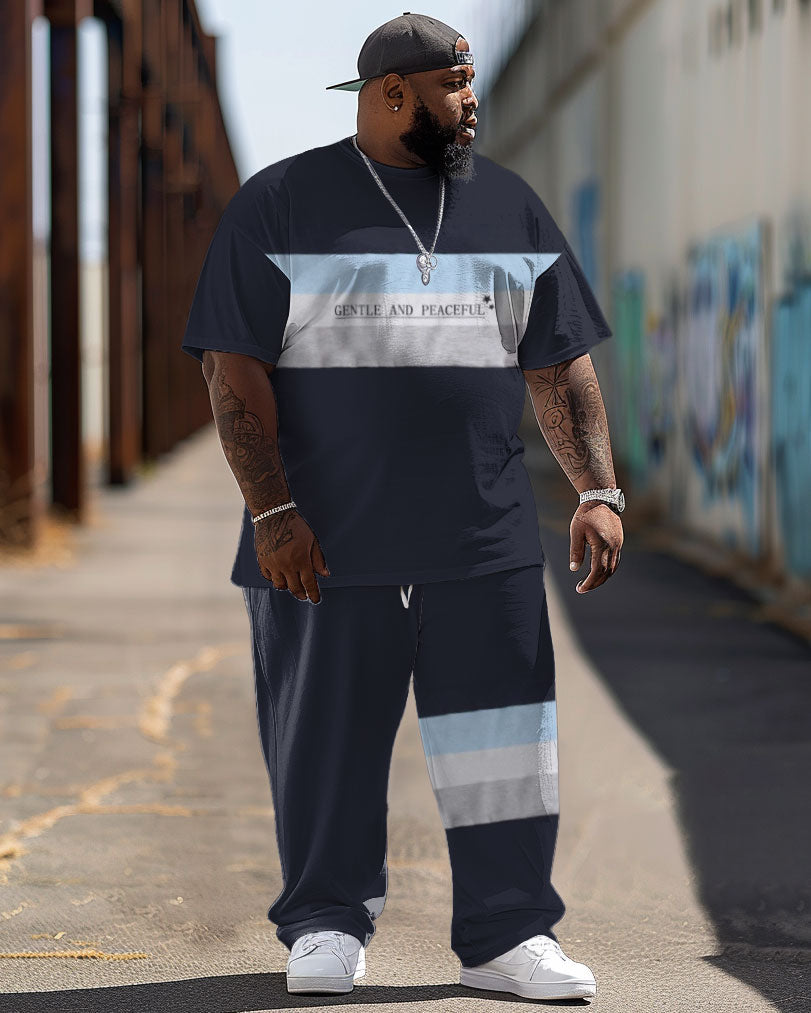This brings freshness with a dark blue tone. The lettering and splicing style tell the infinite possibilities of modern art. The loose fit allows you to enjoy comfort. Every stitching makes this set durable and wear-resistant.
