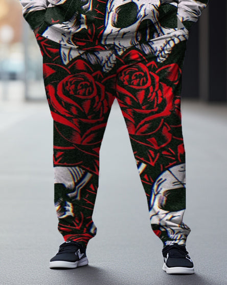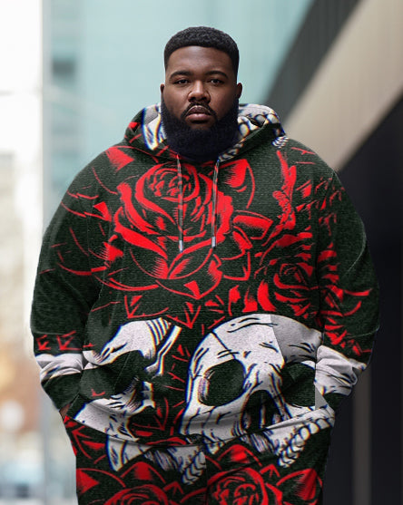 Men's Large Size Street Skull Rose Graffiti Fun Print Hoodie (Pack of Two)