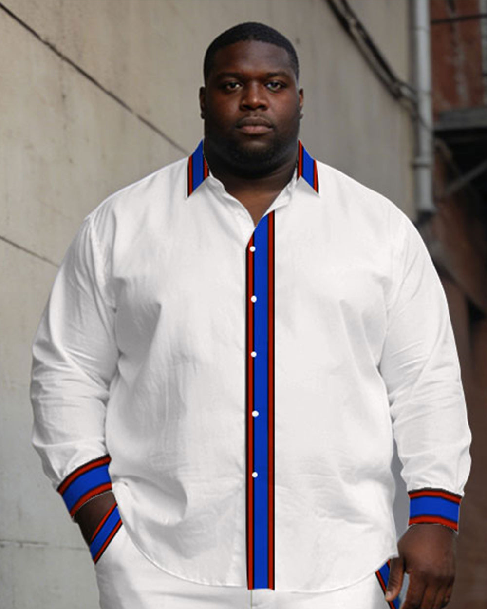 Men's Large Size White Cardigan Placket Color Contrast Simple Long Sleeve Shirt Trousers Business Casual Suit