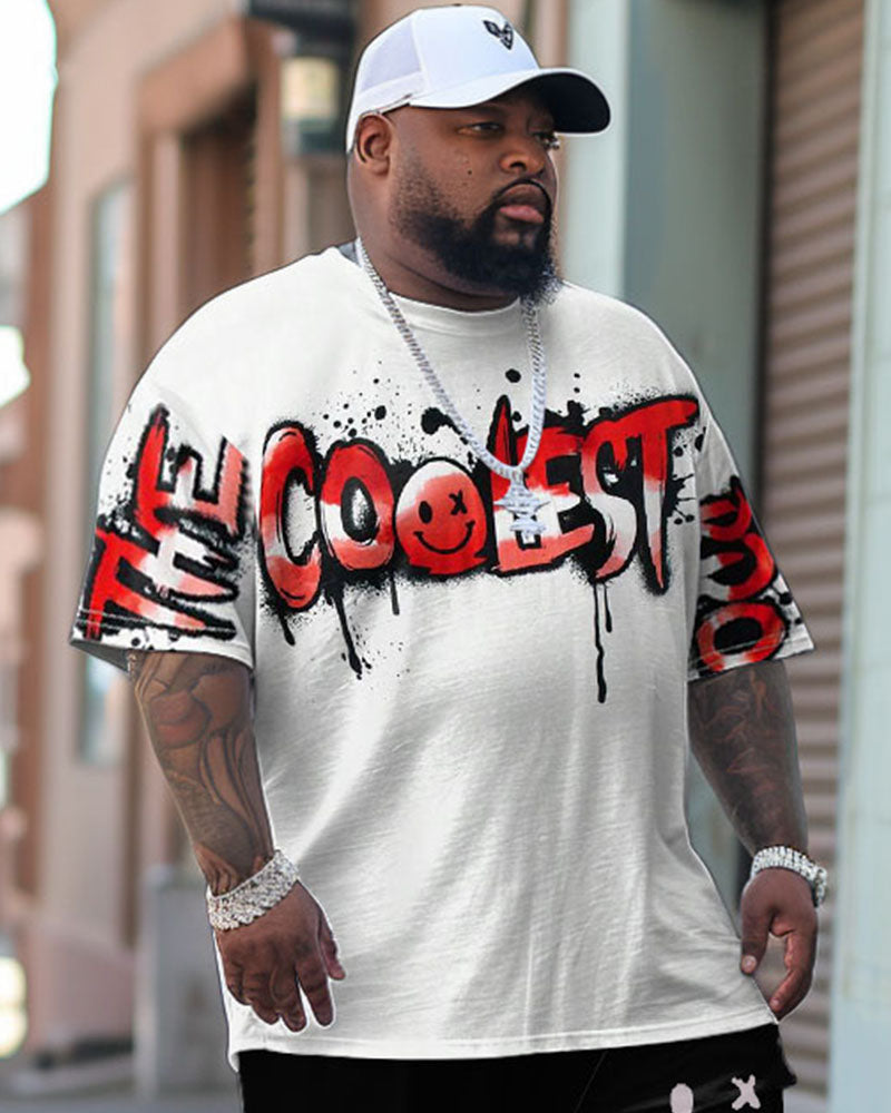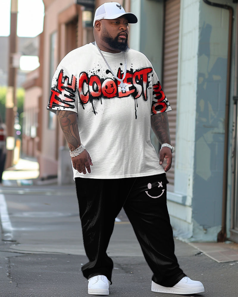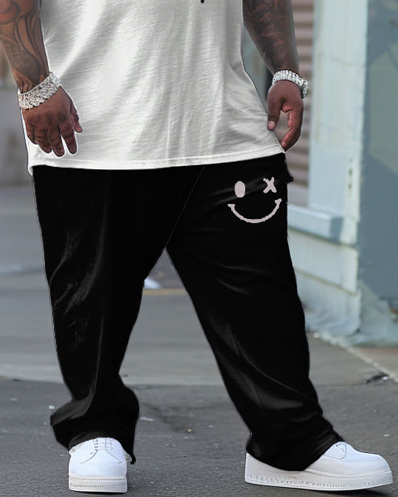 Men's Large Street Casual Graffiti Smiley Letter Print T-Shirt Trousers Suit