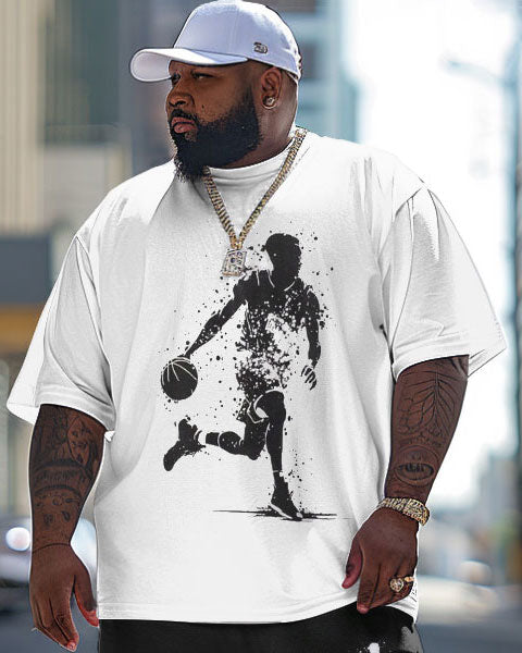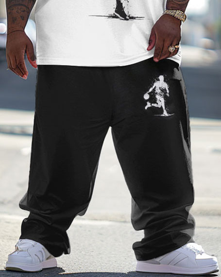 You can't miss this set if you like basketball. This two-piece set for big & tall men features a basketball player print, adding an artistic and dynamic touch. This set brings a fresh take on sports fashion. The relaxed fit ensures comfort, while its versatile design makes it ideal for everyday wear.