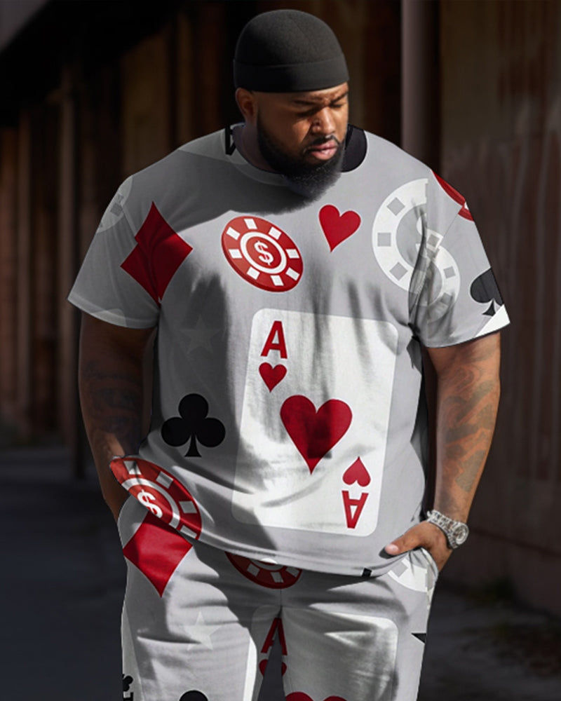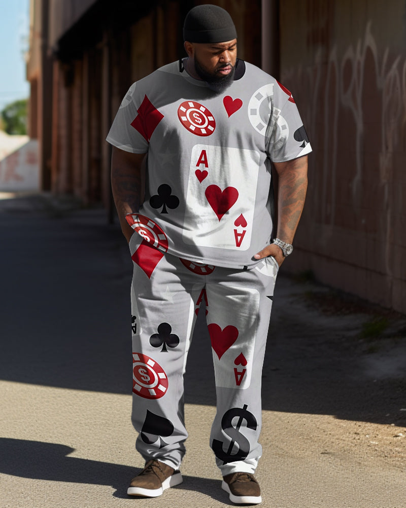 Men's Large Street Casual Poker Graffiti Print T-Shirt Trousers Suit
