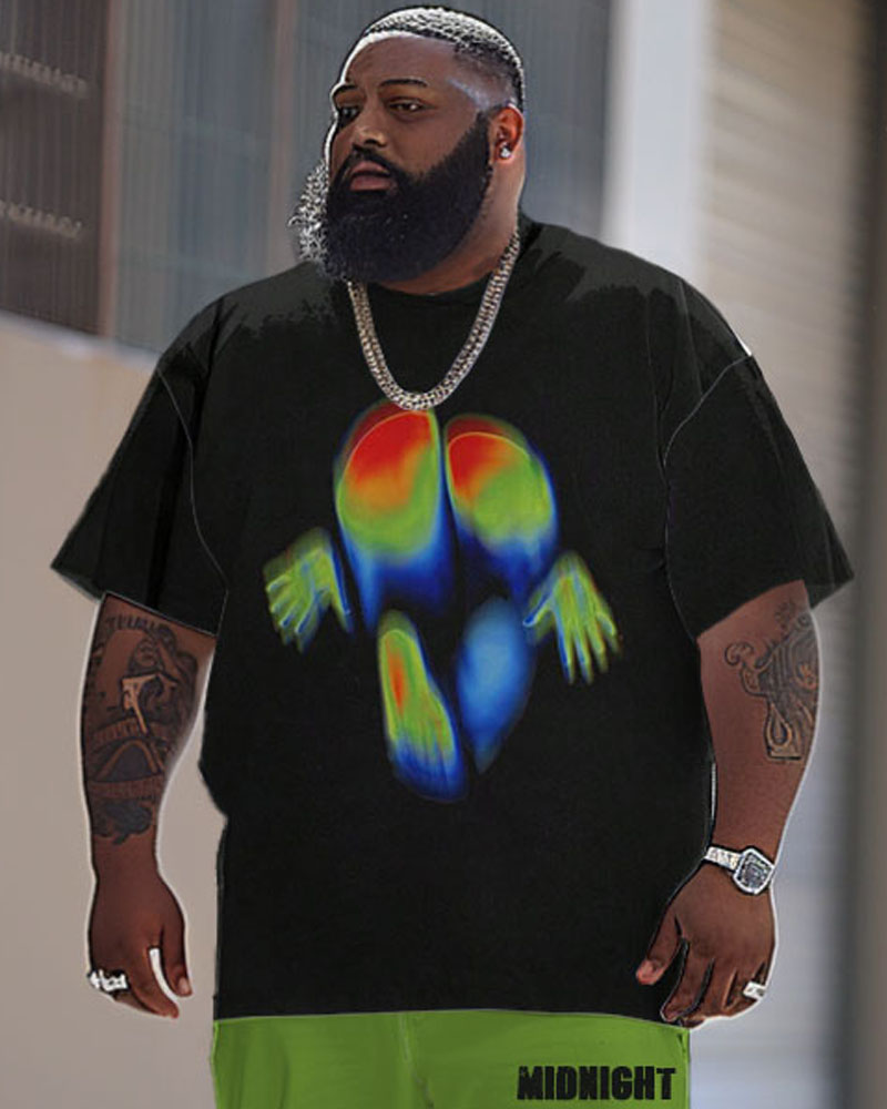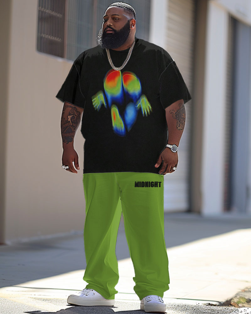 Men's Large Street Casual Thermal Imaging Printed T-Shirt Trousers Suit