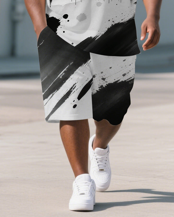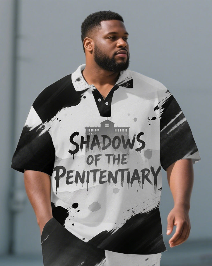 Men's Penitentiary Shadow Graffiti Lettering Short Big and Tall Sleeve Polo Shirt Shorts Set