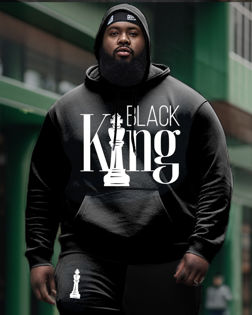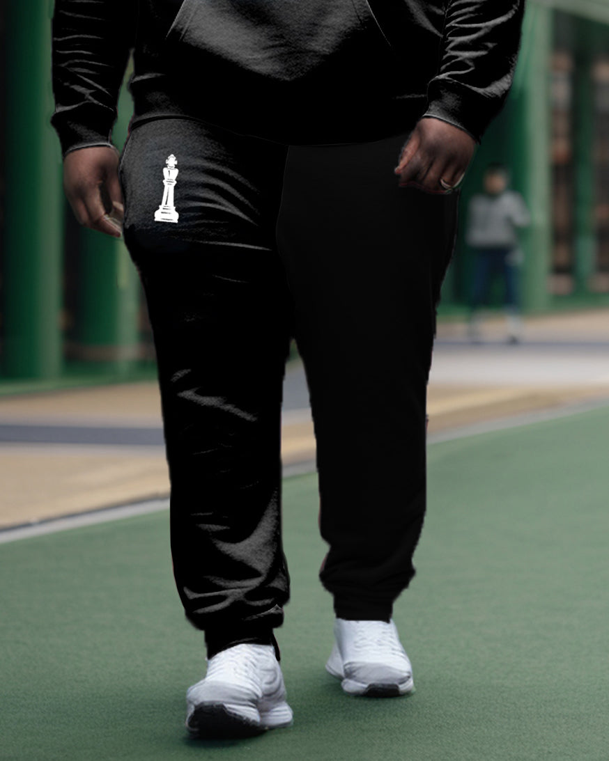 This big and tall black hoodie set blends style and comfort. The soft fabric and relaxed fit make it ideal for lounging or running errands. The simple yet striking chessboard print with lettering adds a touch of urban edge, making it a standout piece in any wardrobe.