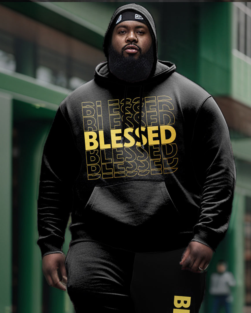 This men’s hoodie set is designed with . Adorned with a yellow "Blessed" print, it adds a pop of color and a statement to your look. Designed with a loose fit, this set ensures maximum comfort, making it ideal for various occasions. Its simple yet fashionable aesthetic keeps you cozy and cool.
