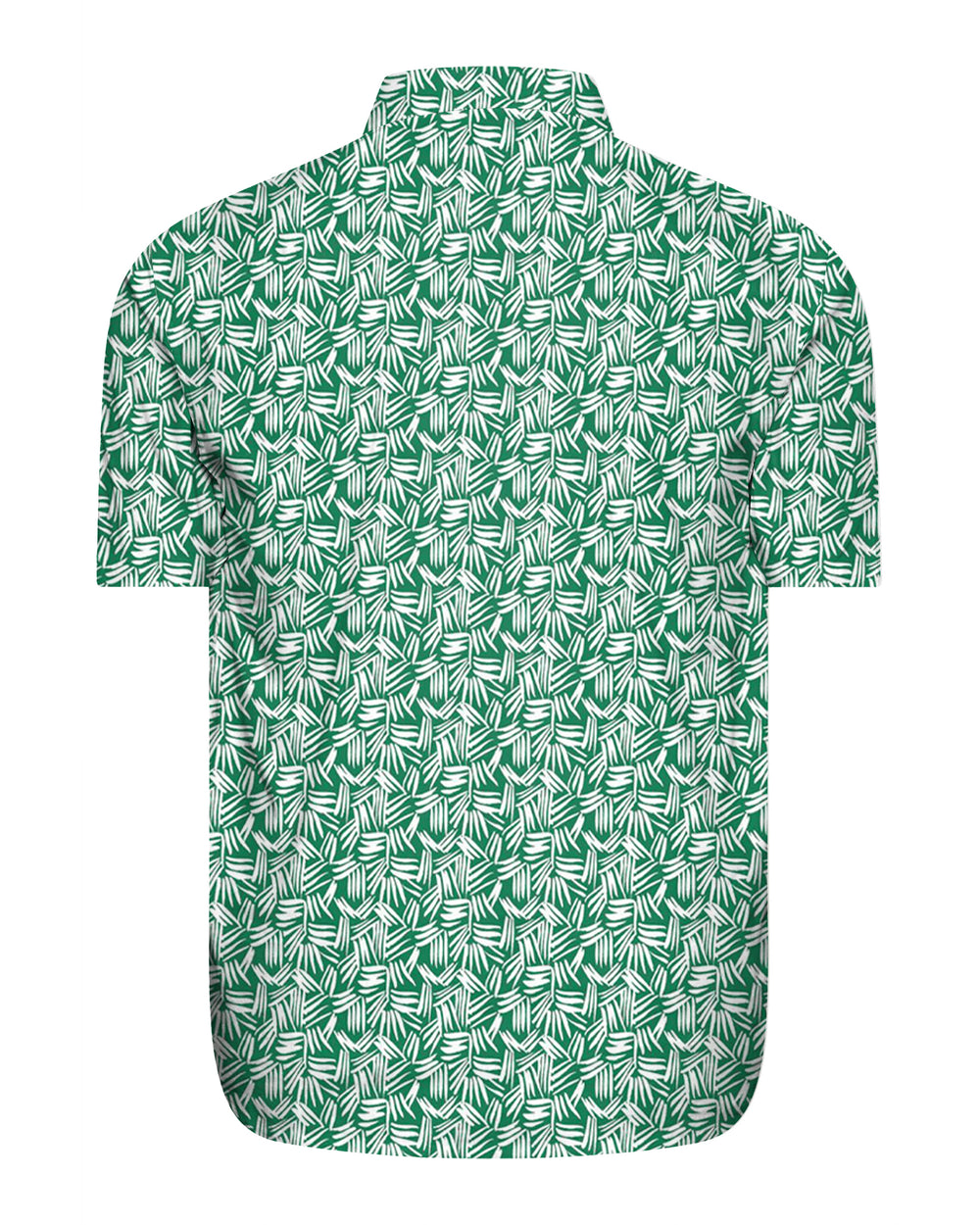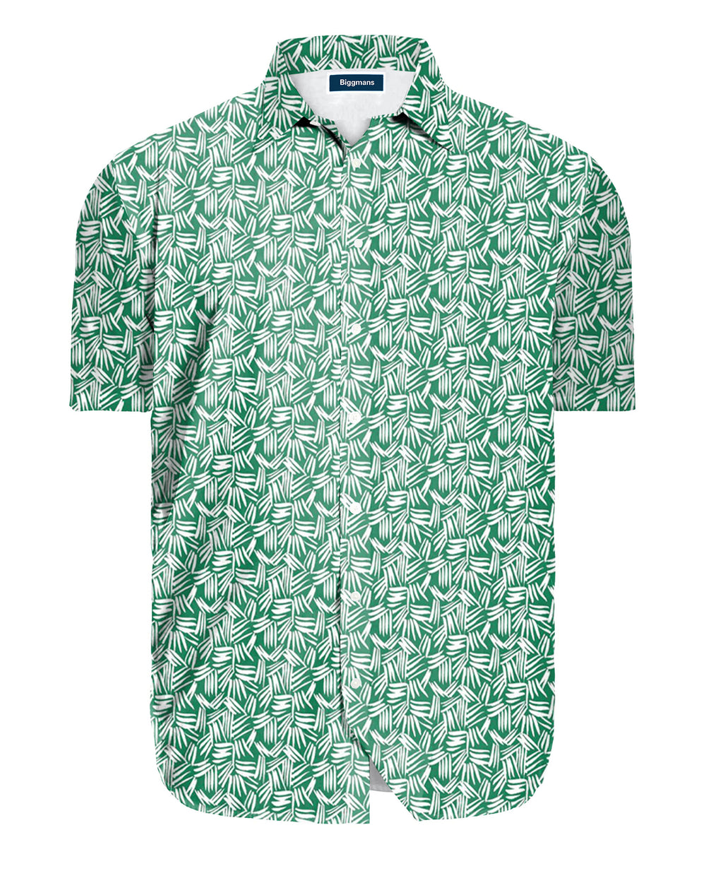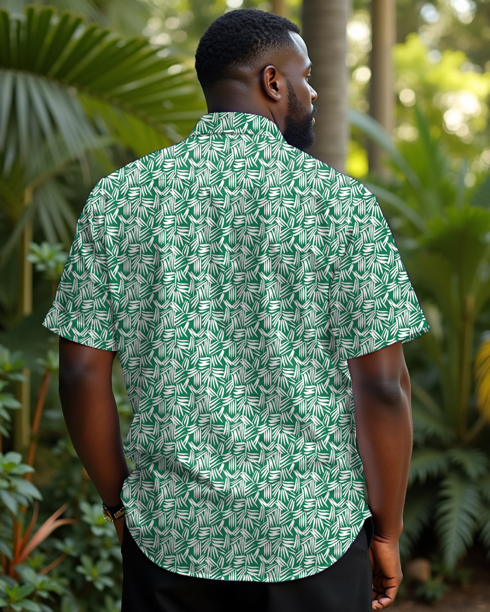 Men's Plus Size Abstract Geometric Leaf Silhouette Green Lapel Short Sleeve Shirt