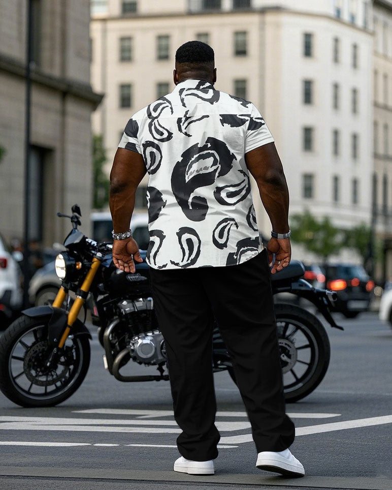 Men's Plus Size Abstract Paisley Quartet Continuous Pattern Short Sleeve Shirt Trousers Suit
