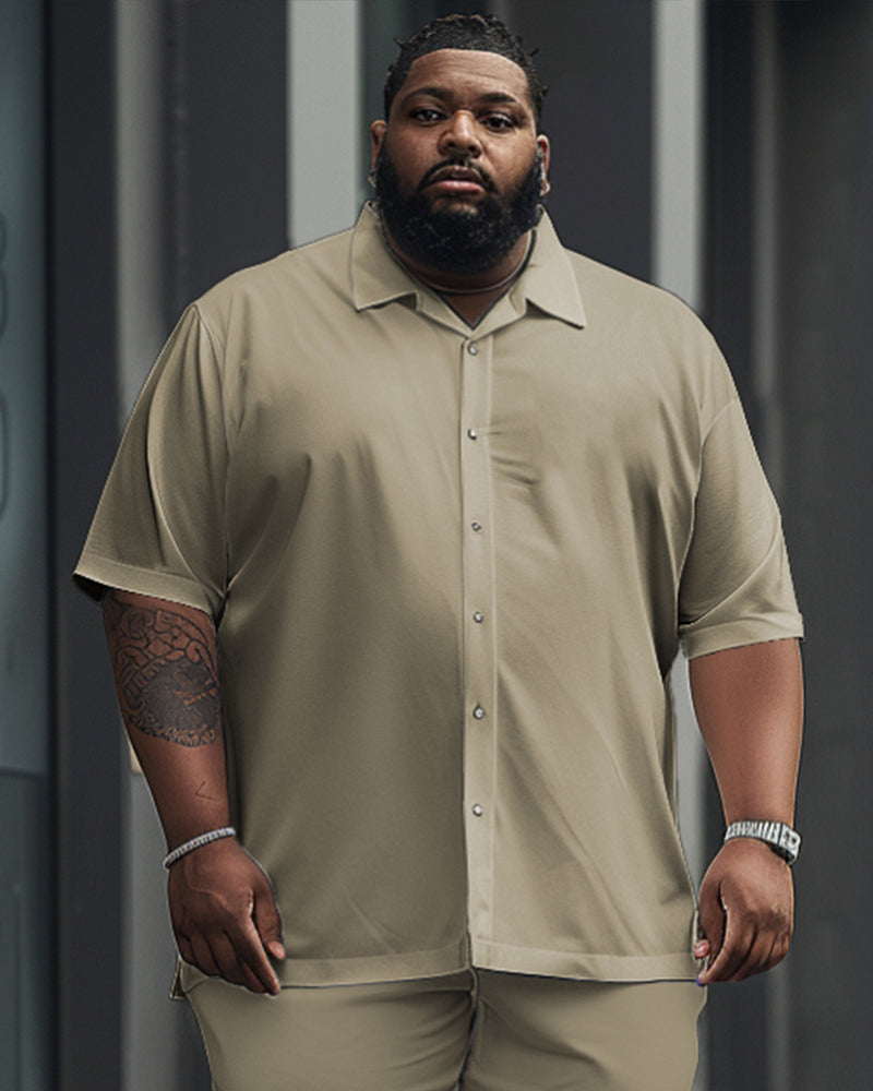 This big men's khaki set is simple yet stylish. As a classic neutral color, Khaki is easy to match and shows the wearer's low-key and restrained temperament. The set adopts a loose version design and cleverly makes the lines smoother and natural. This set can be perfectly adapted wherever you go.