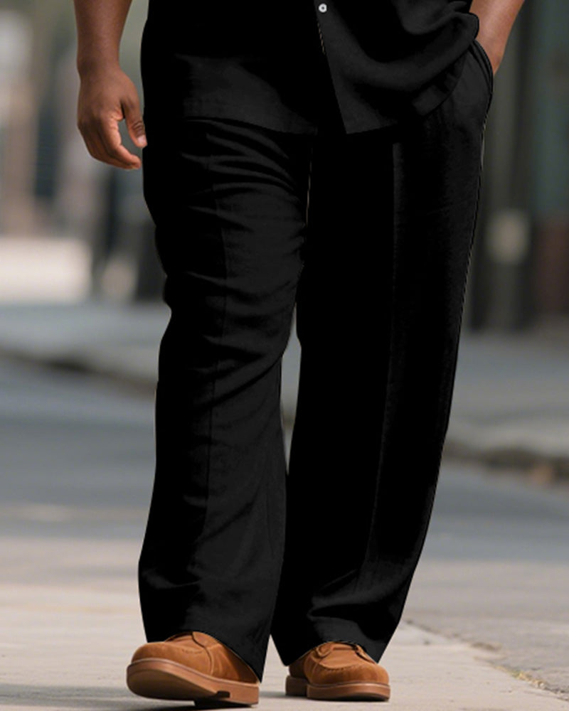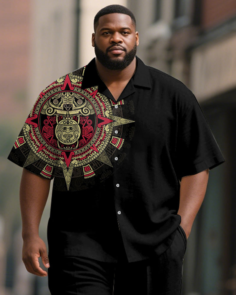 Men's Plus Size Aztec Ethnic Style Printed Short Sleeve Shirt Trousers Suit