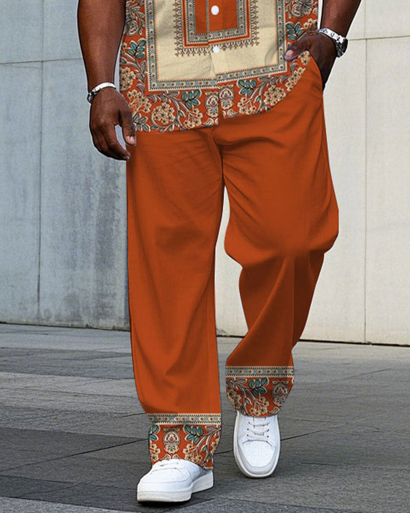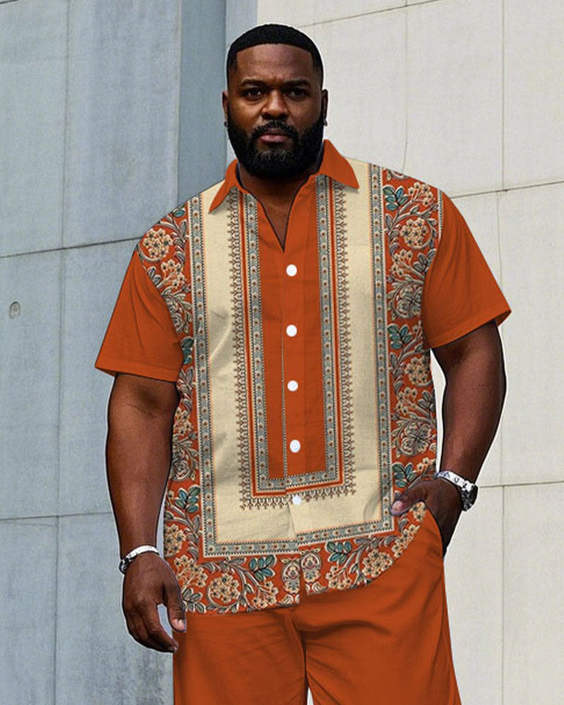 Men's Plus Size Baroque Pattern Symmetrical Short Sleeve Shirt Trousers Suit
