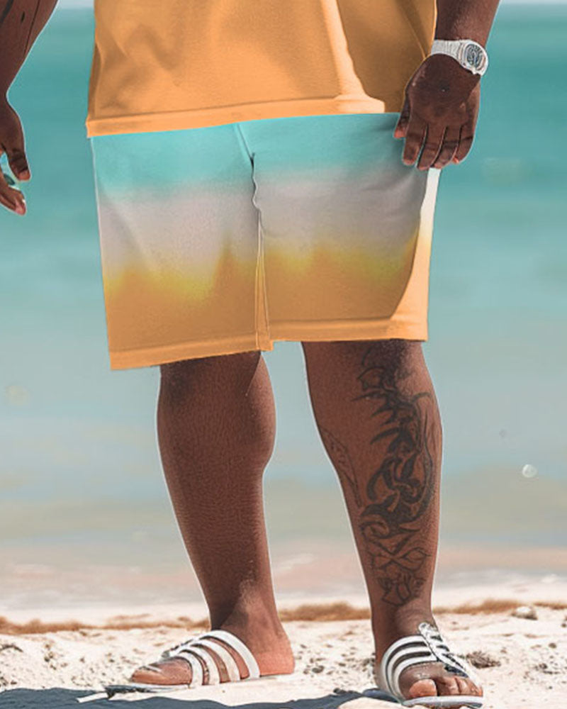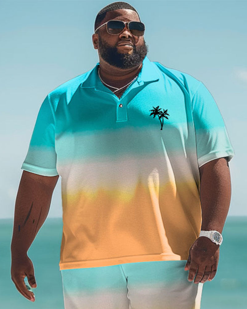 Stay fresh with this big & tall men's two-piece set, featuring a cool green, white, and orange design. It brings a touch of the tropics with a coconut tree print, while the loose fit ensures all-day comfort. The vibrant colors and breezy style make it ideal for any summer occasion, offering a laid-back look.
