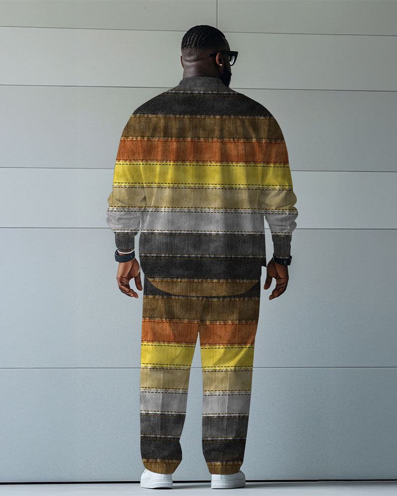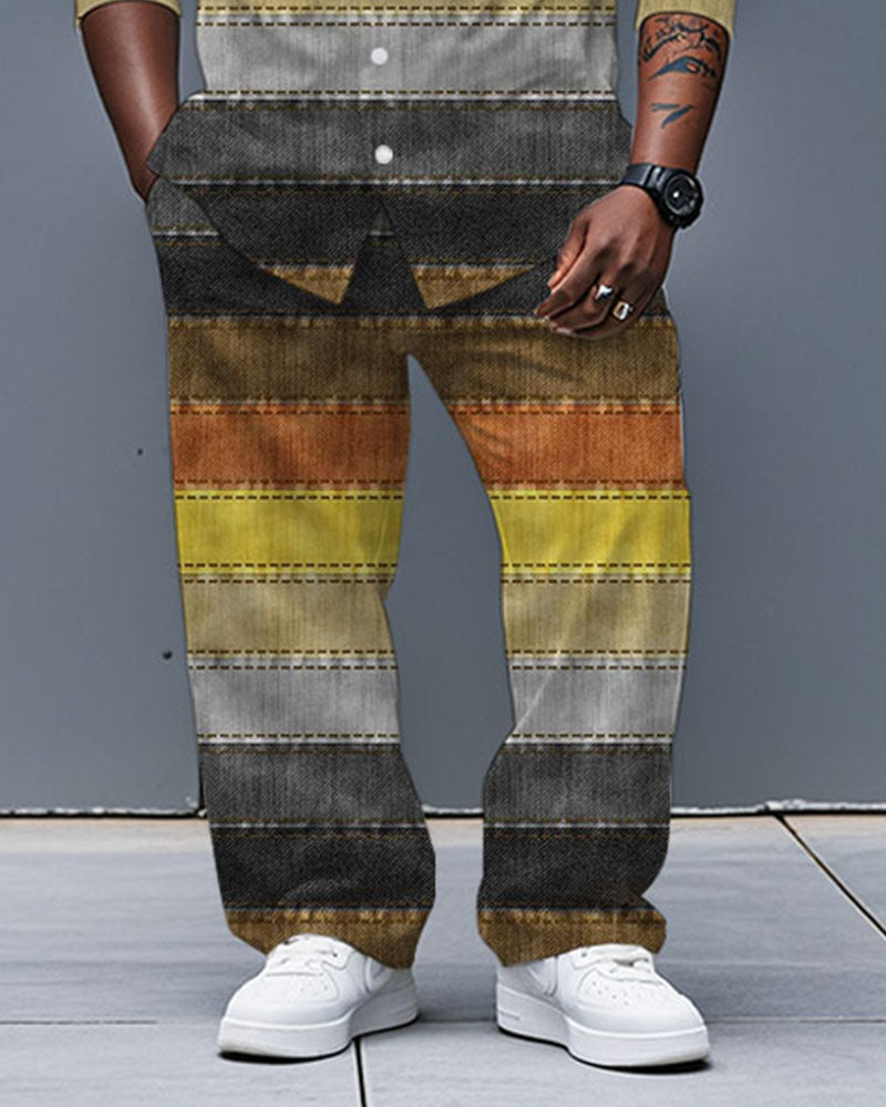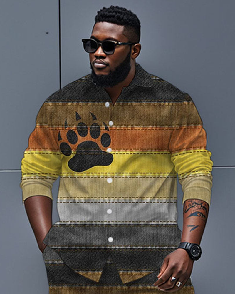 This men's plus size suit is the perfect blend of trend and comfort. The long-sleeved shirt is paired with trousers for a classic and practical look. The bear claw colour block print is the highlight, with a cool sense of colour collision that instantly catches the eye. The plus size fit is tailored to a man's body shape, making it easy to show off your unique personality for daily commuting or travelling.