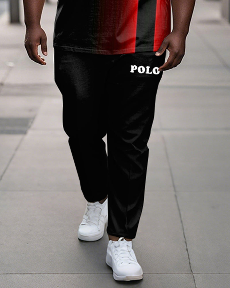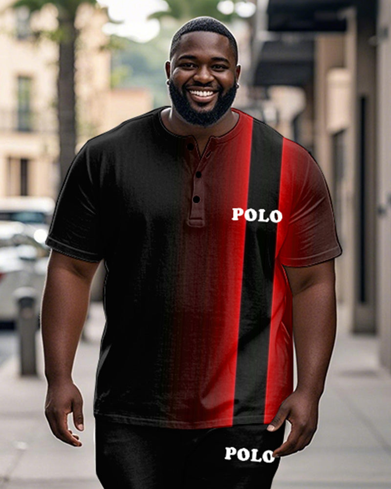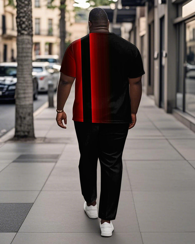 Men's Plus Size Black And Red Gradient Colorblock Alphabet Print Henry Collar T-Shirt Trousers Suit