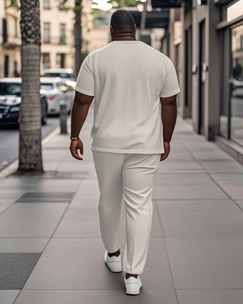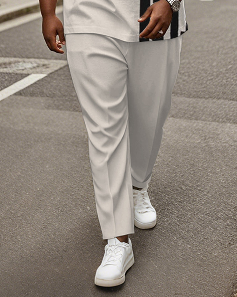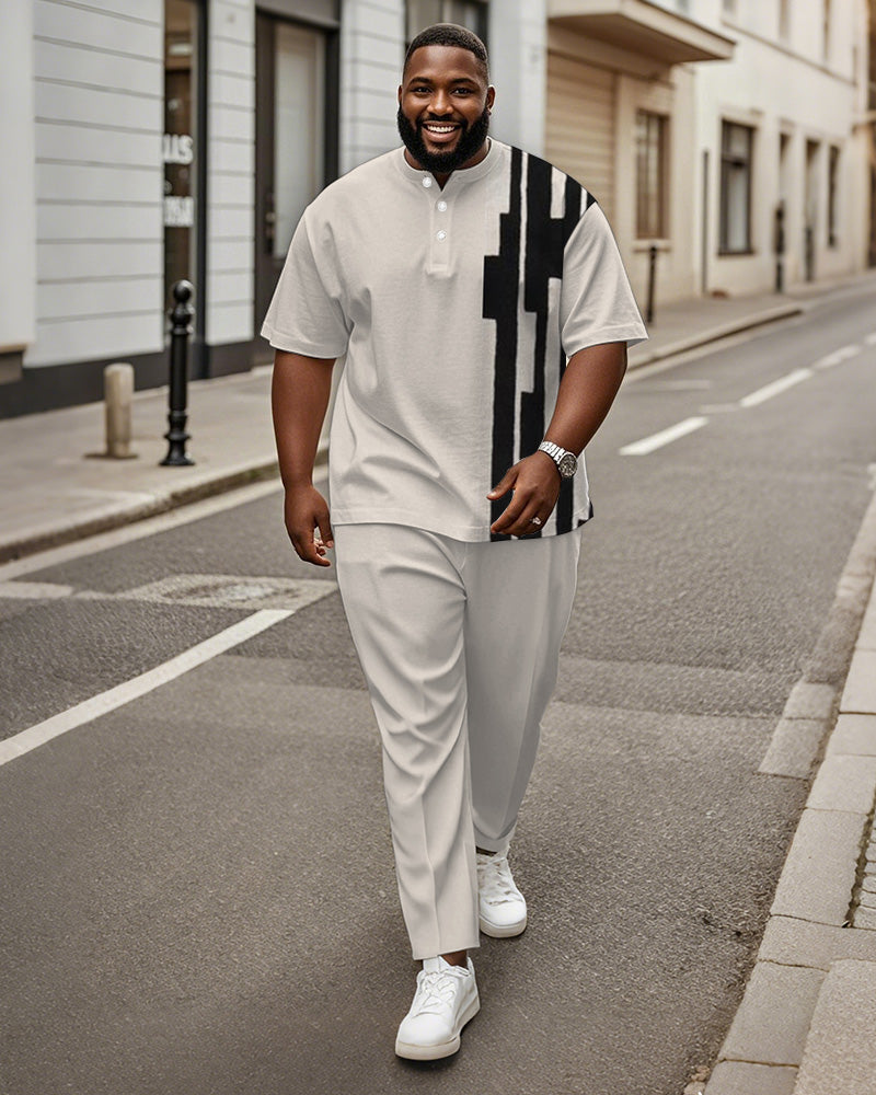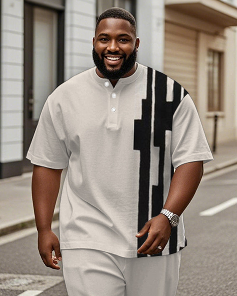 Men's Plus Size Black Apricot Colorblock Geometric Print Henry Collar T-Shirt Trousers Suit