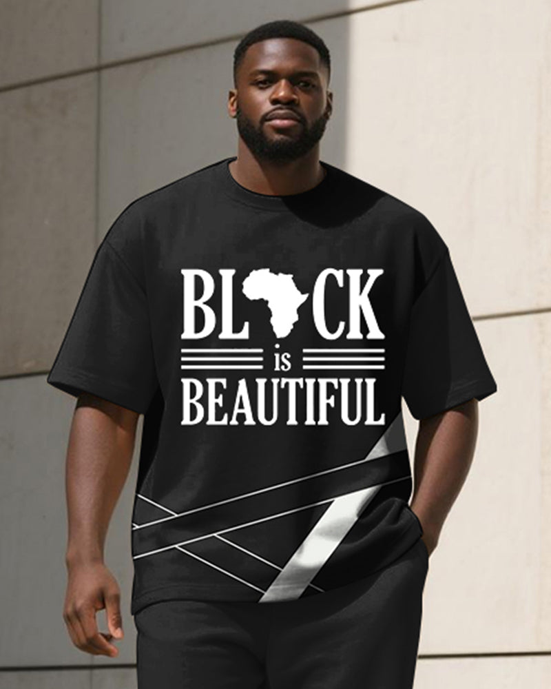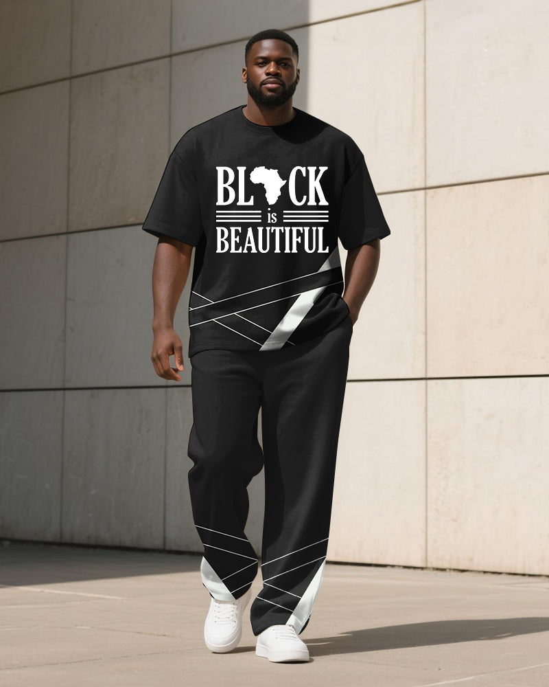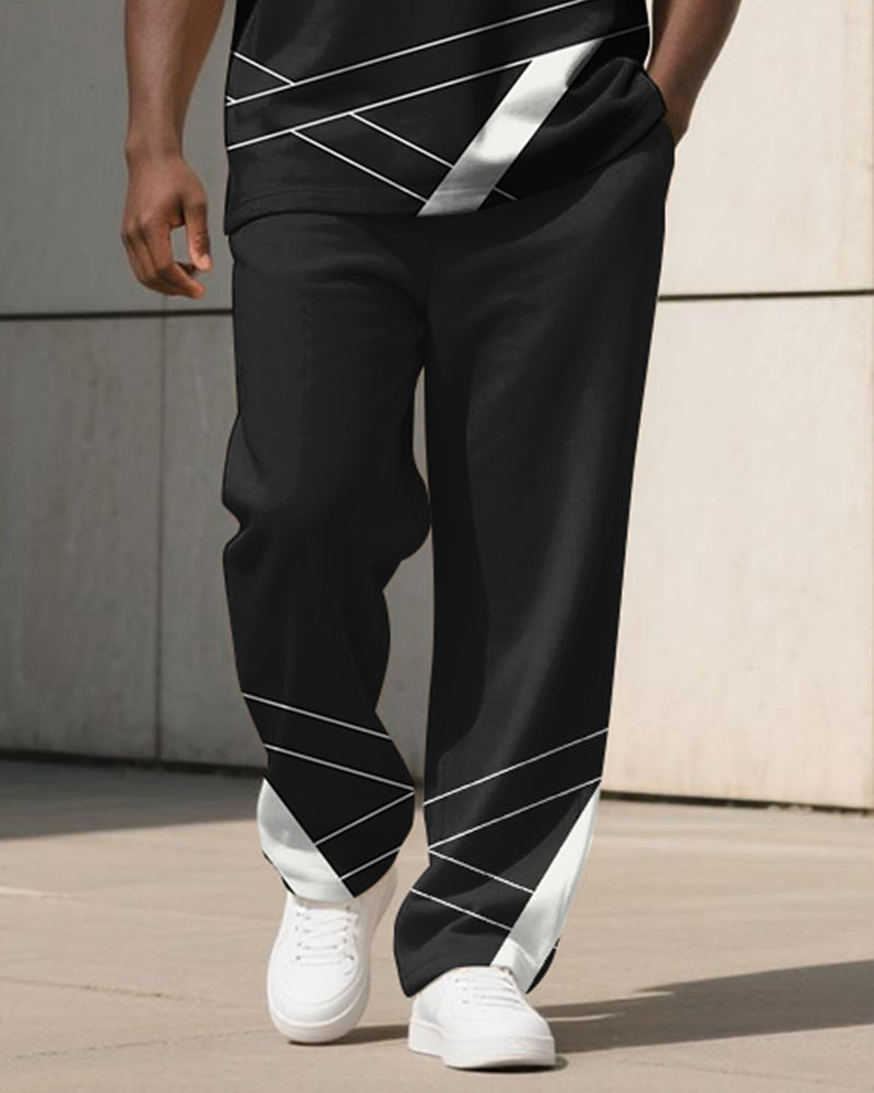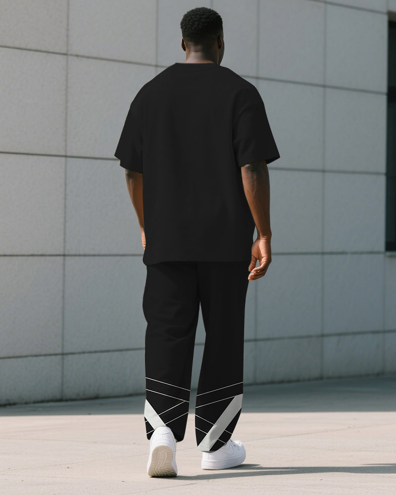 Men's Plus Size Black Color-block Geometric Stripe Alphabet Print T-shirt Trousers Suit