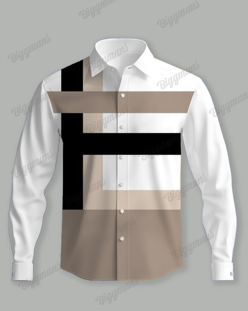 This men's plus size suit is a blend of black and khaki two-tone color, low-key and eye-catching. The striped print design is unique and smooth, giving the overall sense of rhythm and breaking the dullness of solid colors. The long-sleeved shirt is comfortable and easy to wear, and the matching pants are loose-fitting and designed for plus-size figures, making it easy for men to show off their casual chic style.