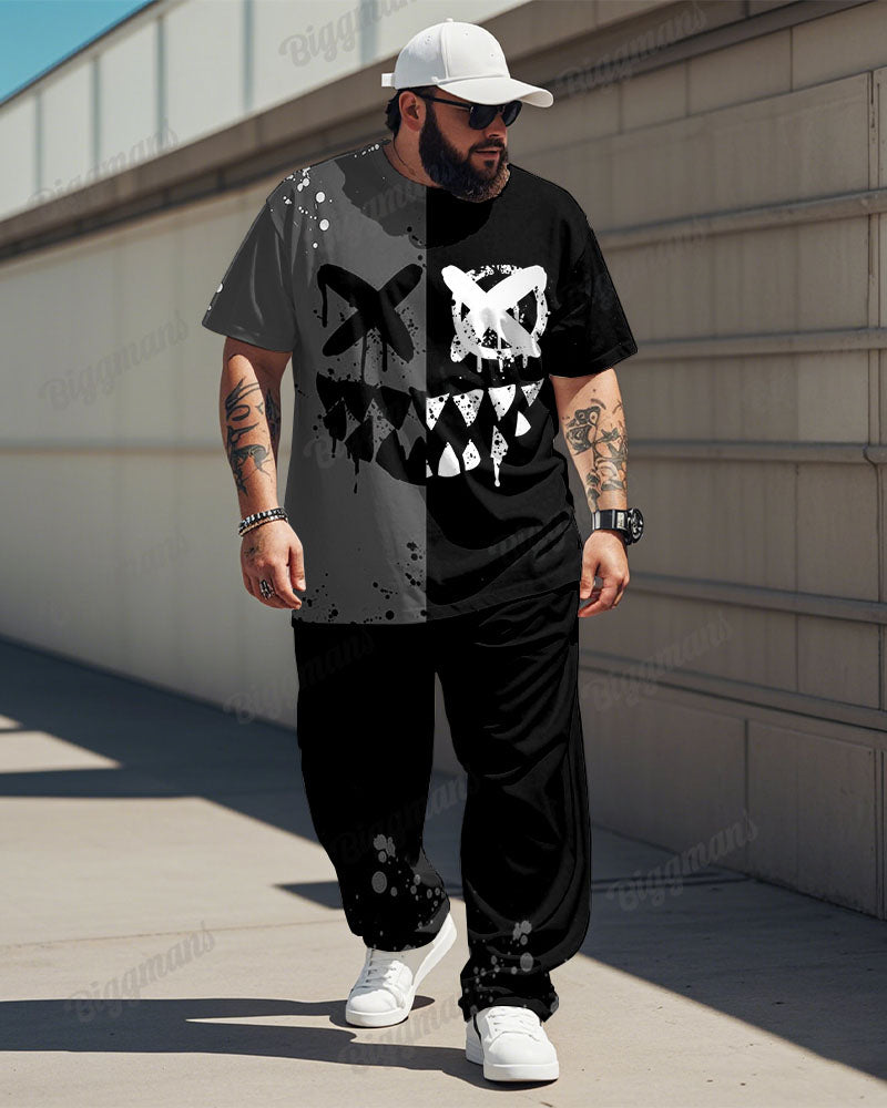 Unleash your urban edge with this men's big & tall T-shirt streetwear set, featuring black-and-gray color-blocking and smiley graphics for rebellious cool. The breathable cotton blend and reinforced seams withstand daily adventures, while the relaxed fit keeps you comfortable whether you're skating or hanging out.