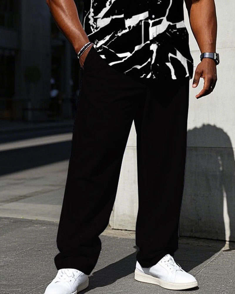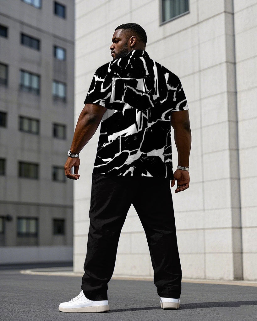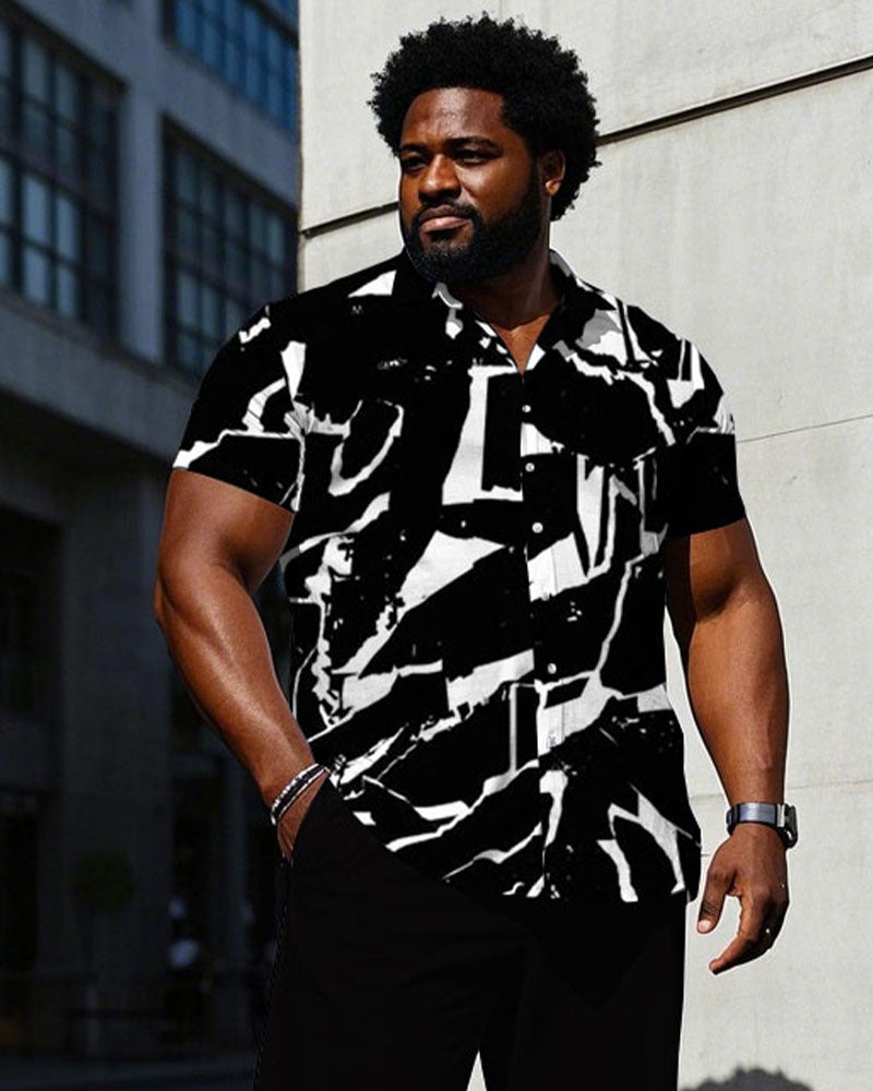 Men's Plus Size Black Hourglass Geometric Short Sleeve Shirt Trousers Suit