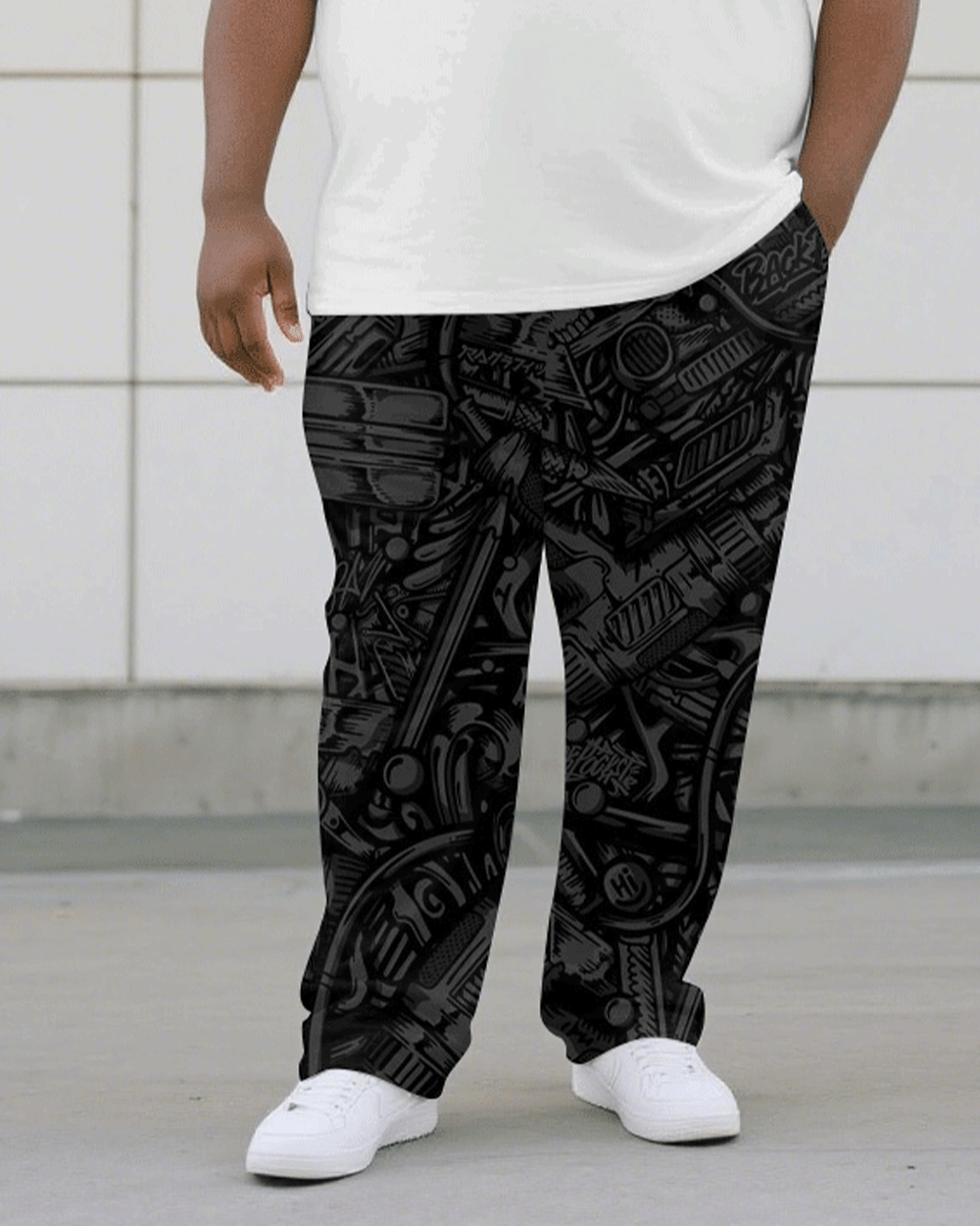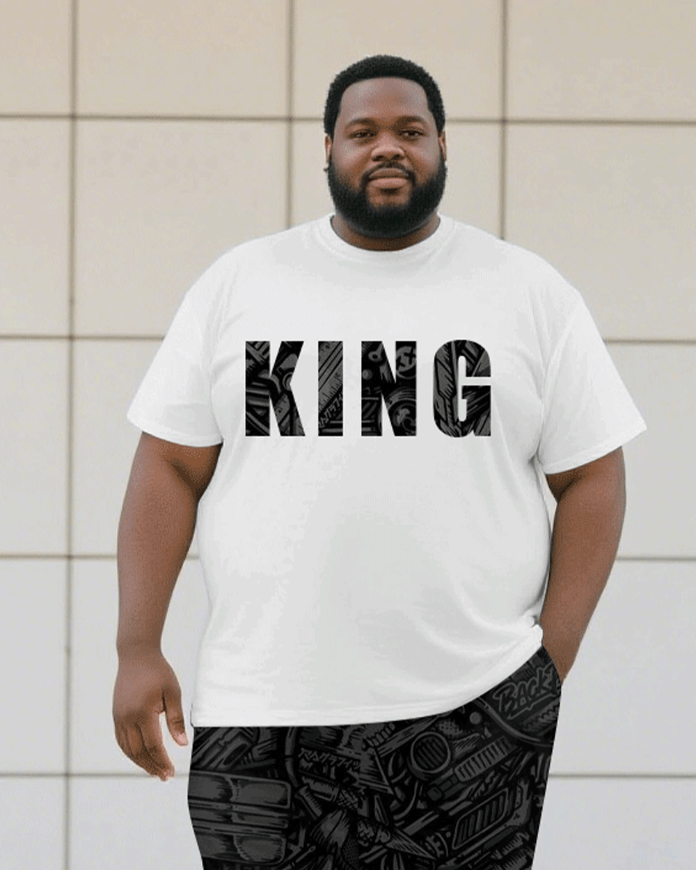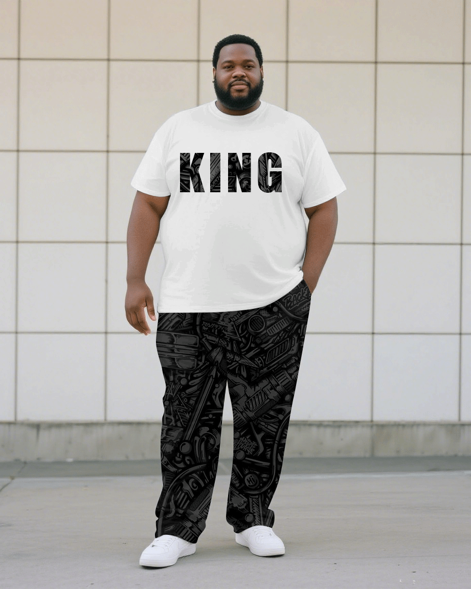 Men's Plus Size Black Jacquard King Short Sleeve T-Shirt Trousers Suit