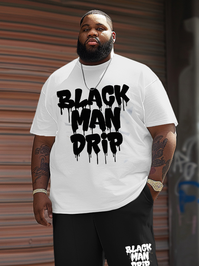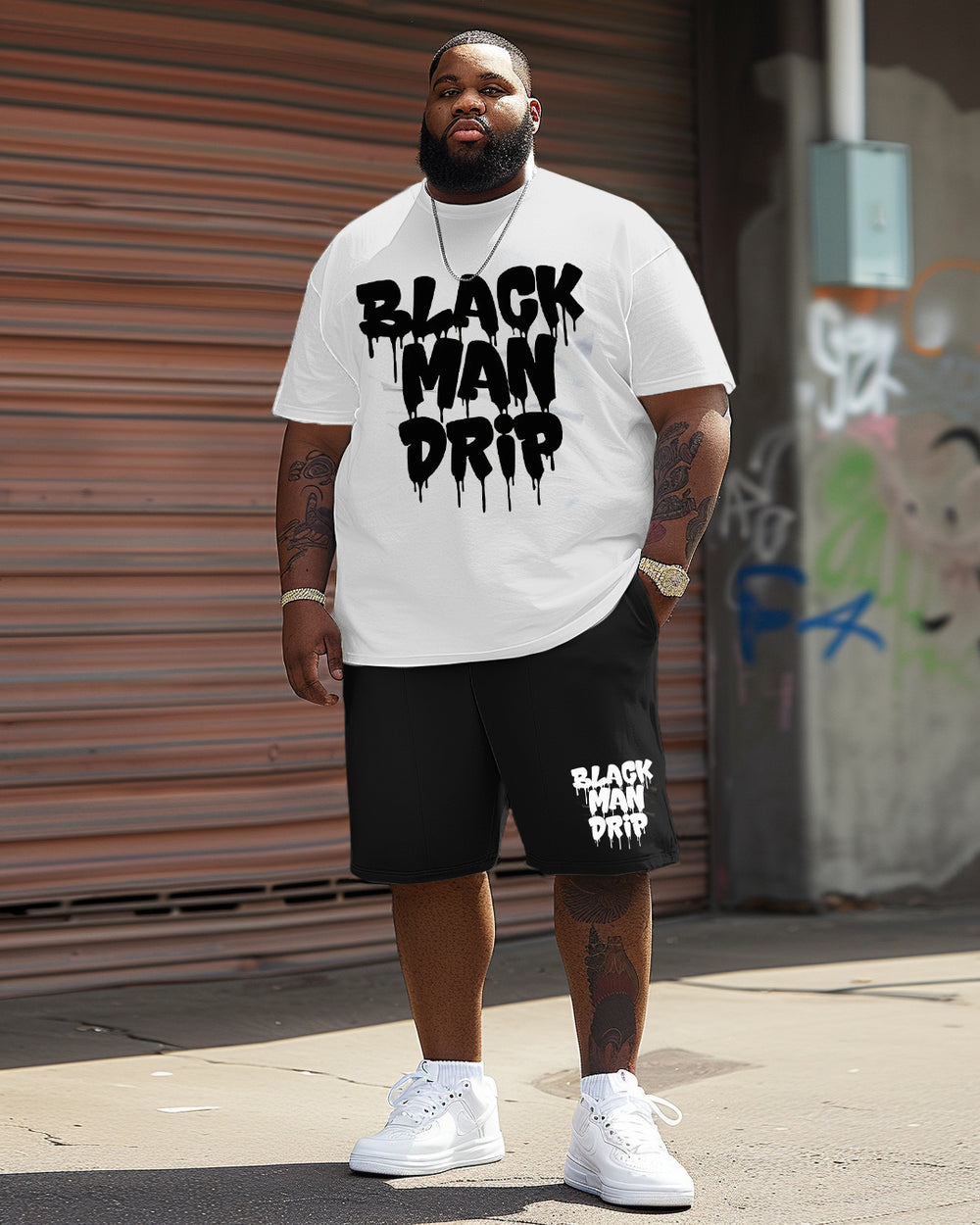 Say hello to this men's big & tall short set that makes a statement! Printed with a playful "BLACK MAN DRIP" letter and a trail of ink, this set is simple and fun. The loose and comfy fit is perfect for a relaxed summer vibe. Whether hitting the streets or lounging at home, this set is your ticket to street fashion coolness.