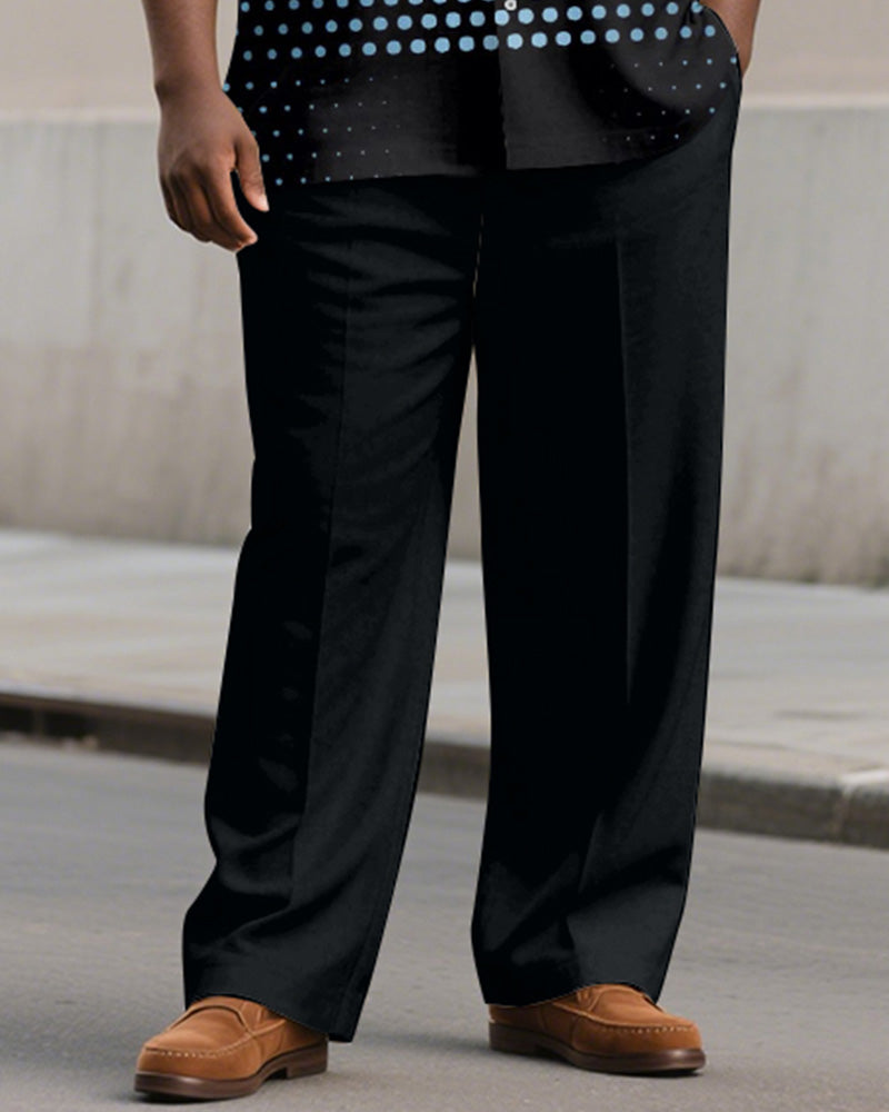 Men's Plus Size Black Poll Dot Print Short Sleeve Shirt Trousers Suit