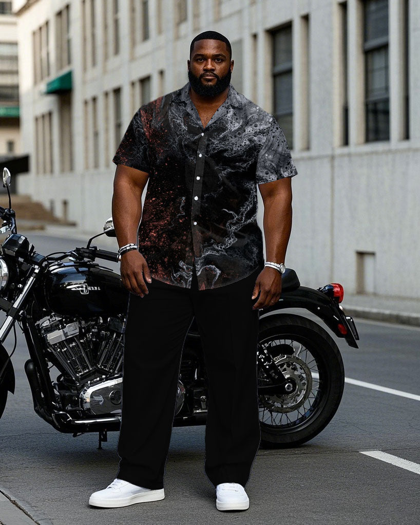 Men's Plus Size Black Star Short Sleeve Shirt Trousers Suit