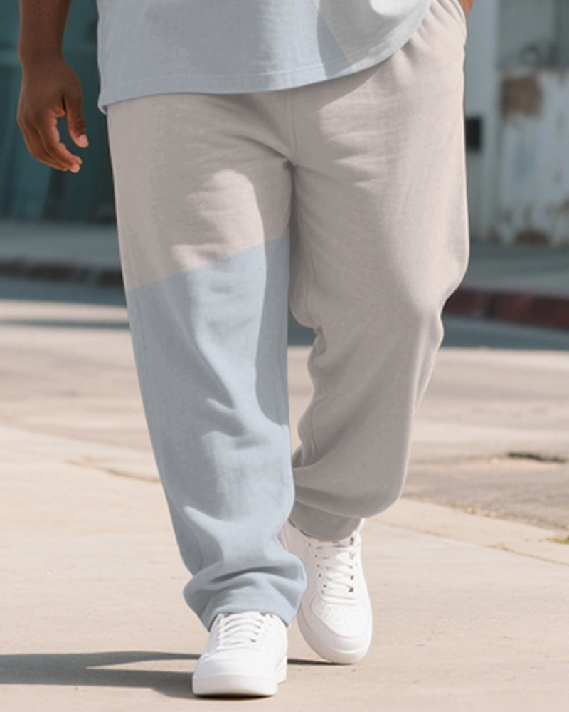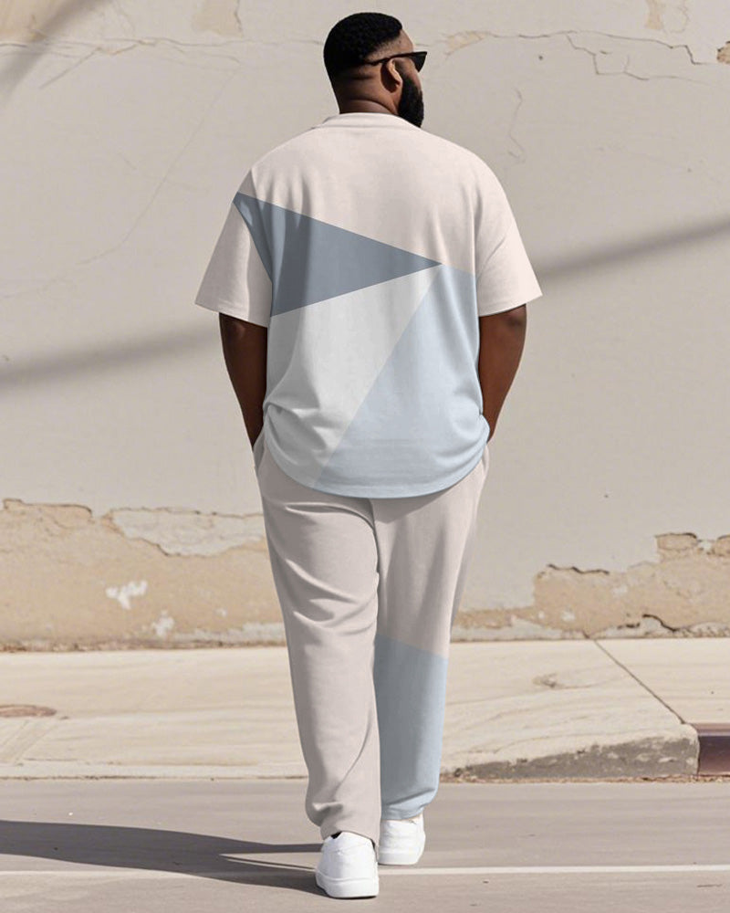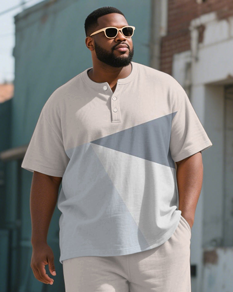 Men's Plus Size Blue Apricot Colorblock Printed Henley Collar T-Shirt Trousers Suit