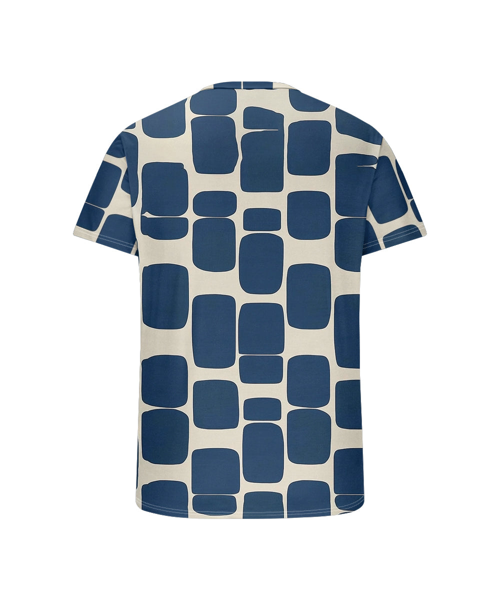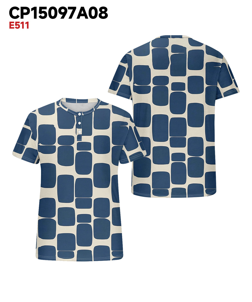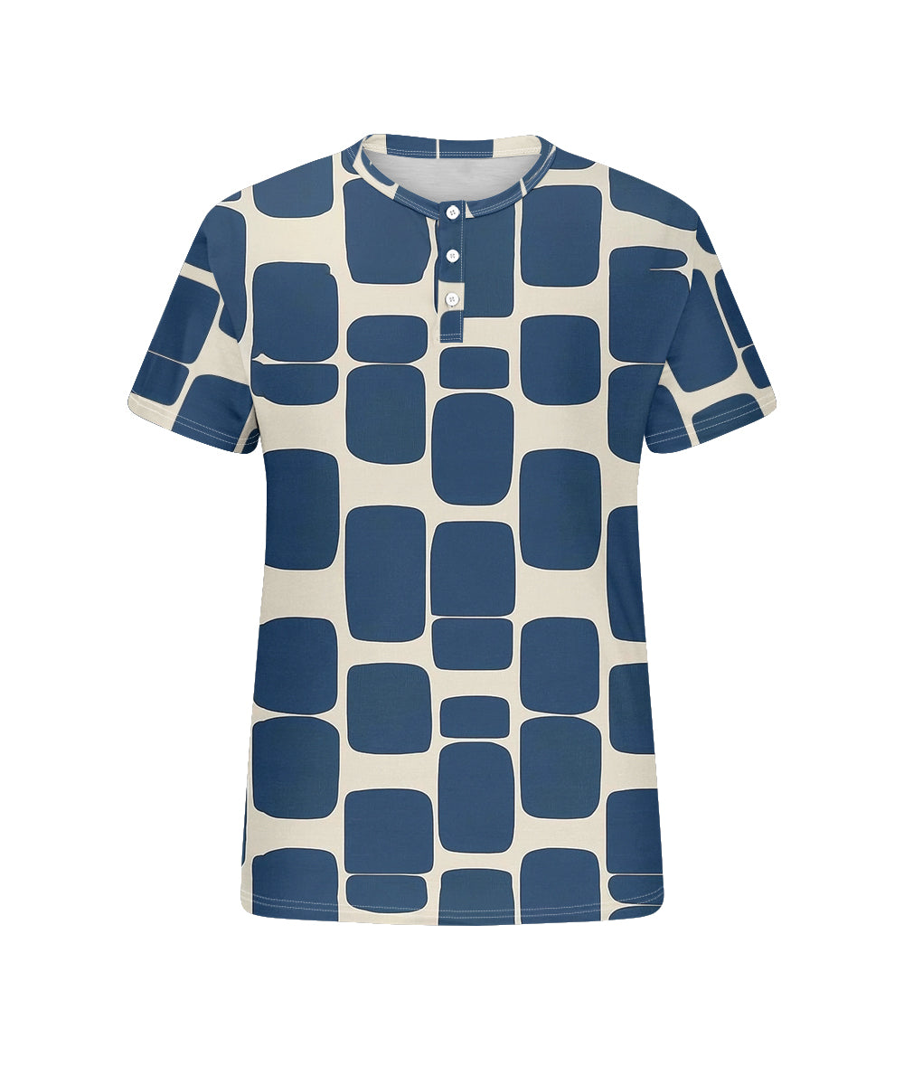 Men's Plus Size Blue Geometric Print Henry Collar Button Short Sleeve T-shirt