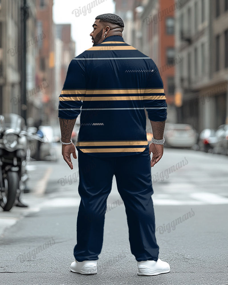 This men's suit with a plus size fit is designed for multiple body types. The blue khaki color combination is both calm and fresh. Striped prints embellish the long-sleeved shirt, adding a dynamic sense of style. The pants coordinate with the shirt for a casual look. The overall style is unique, whether it is for daily travel or casual gatherings, it allows men to easily show their confidence, charm and individual taste.