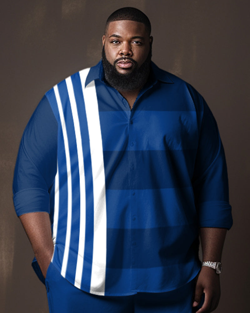Men's Plus Size Blue Line Color Matching Gradient Longt Sleeve Walking Suit