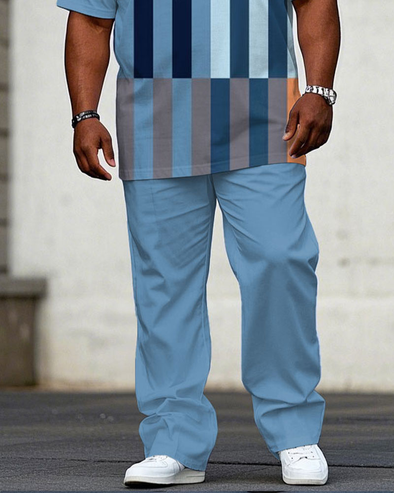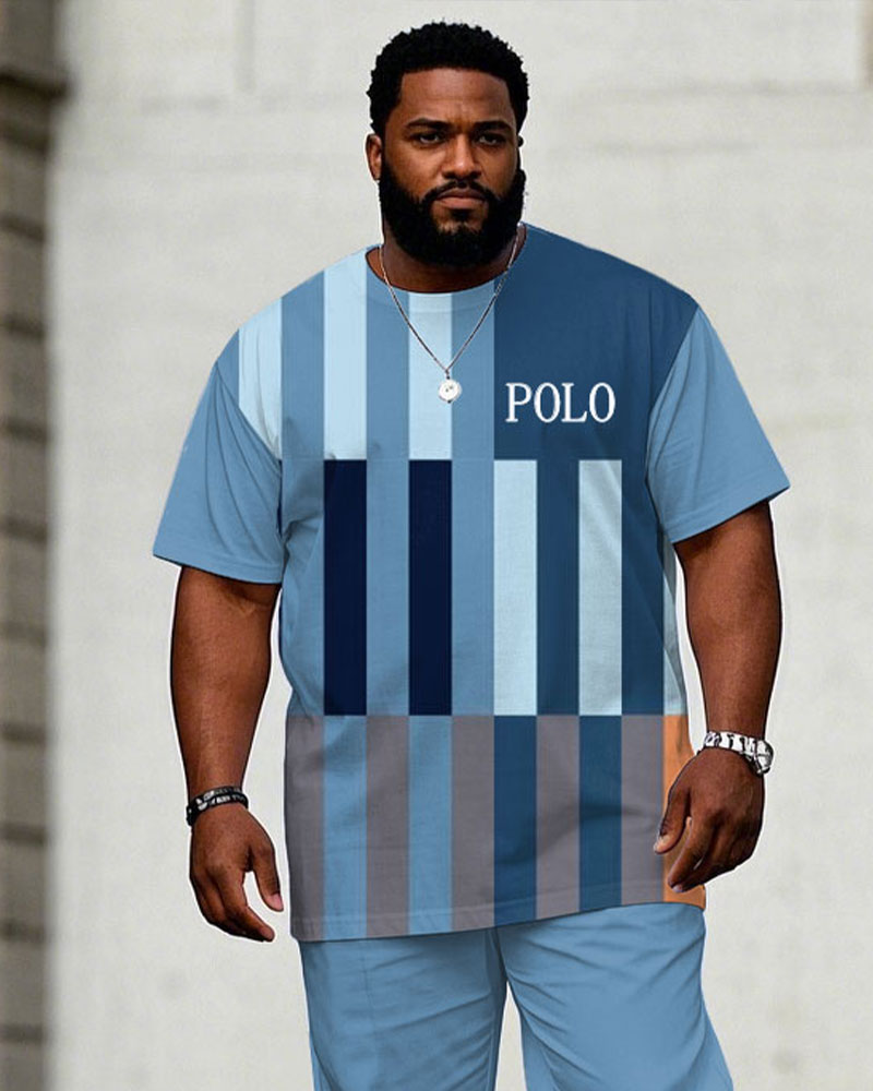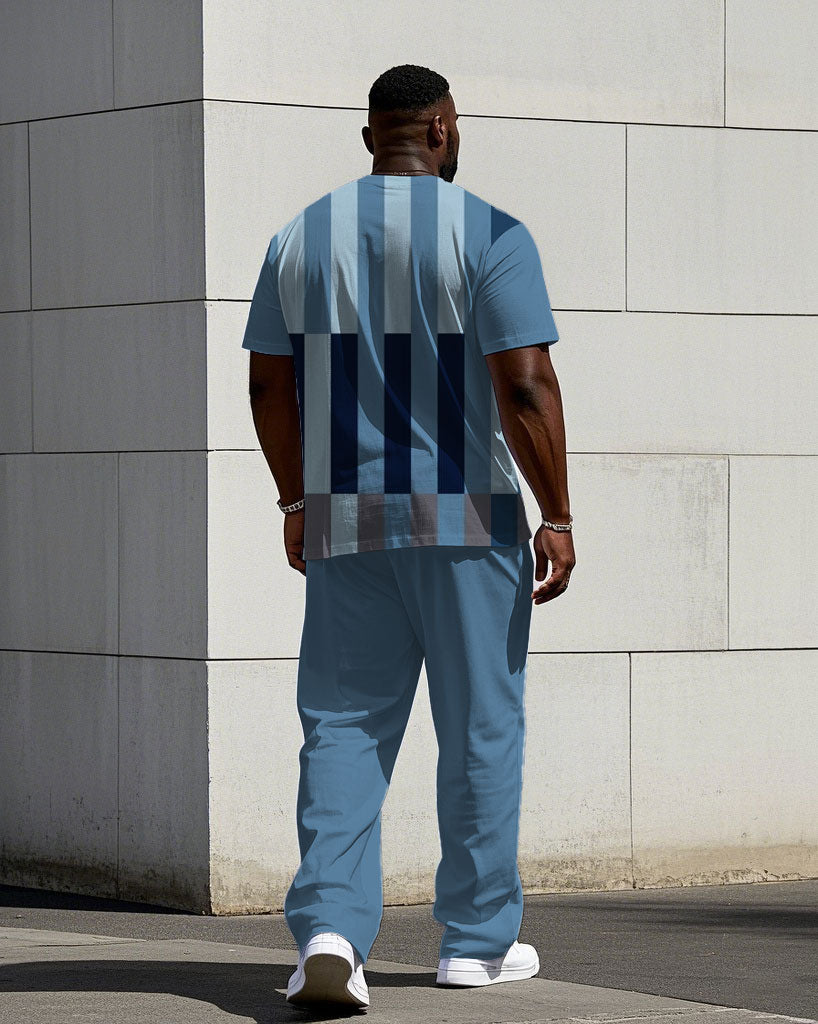 Men's Plus Size Blue Multi-geometric Chest Small Label Printed Short-sleeved T-shirt Trousers Suit