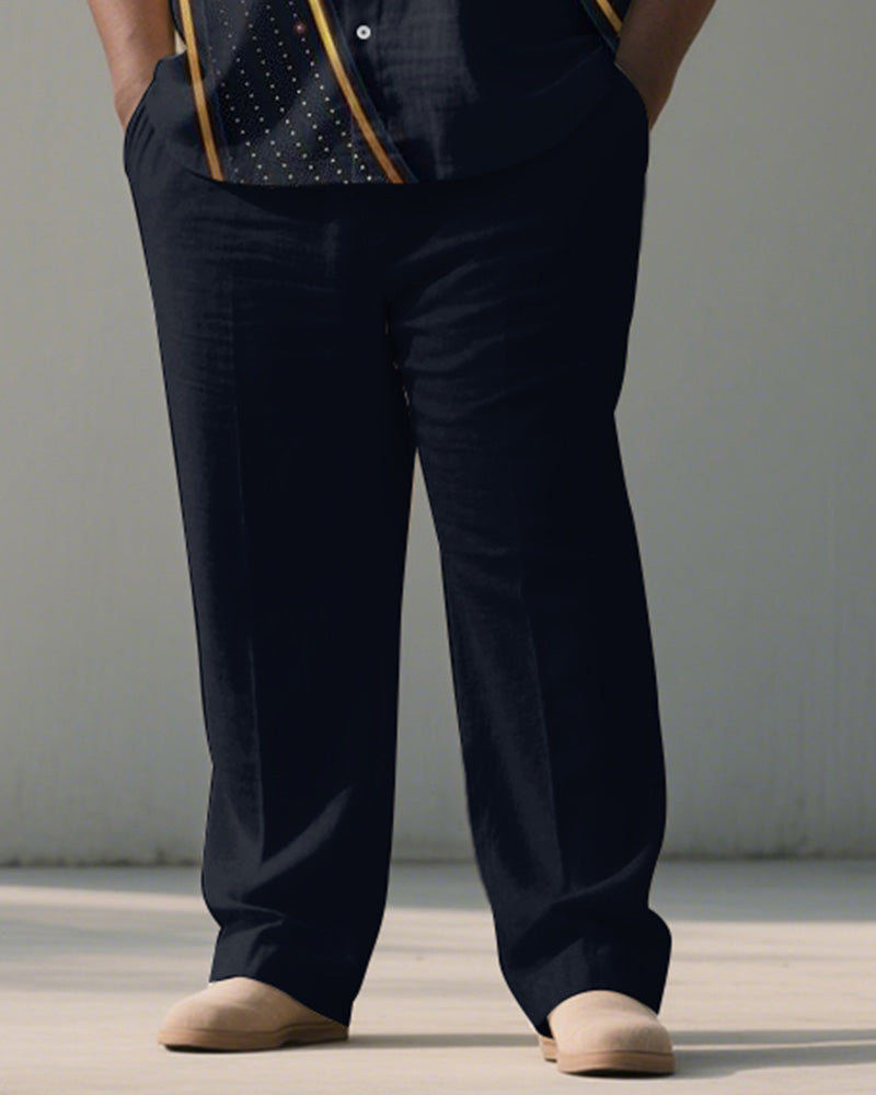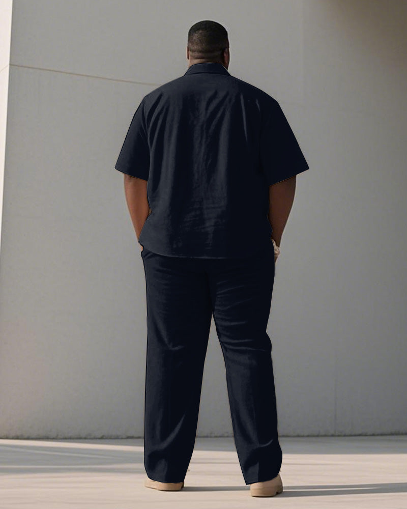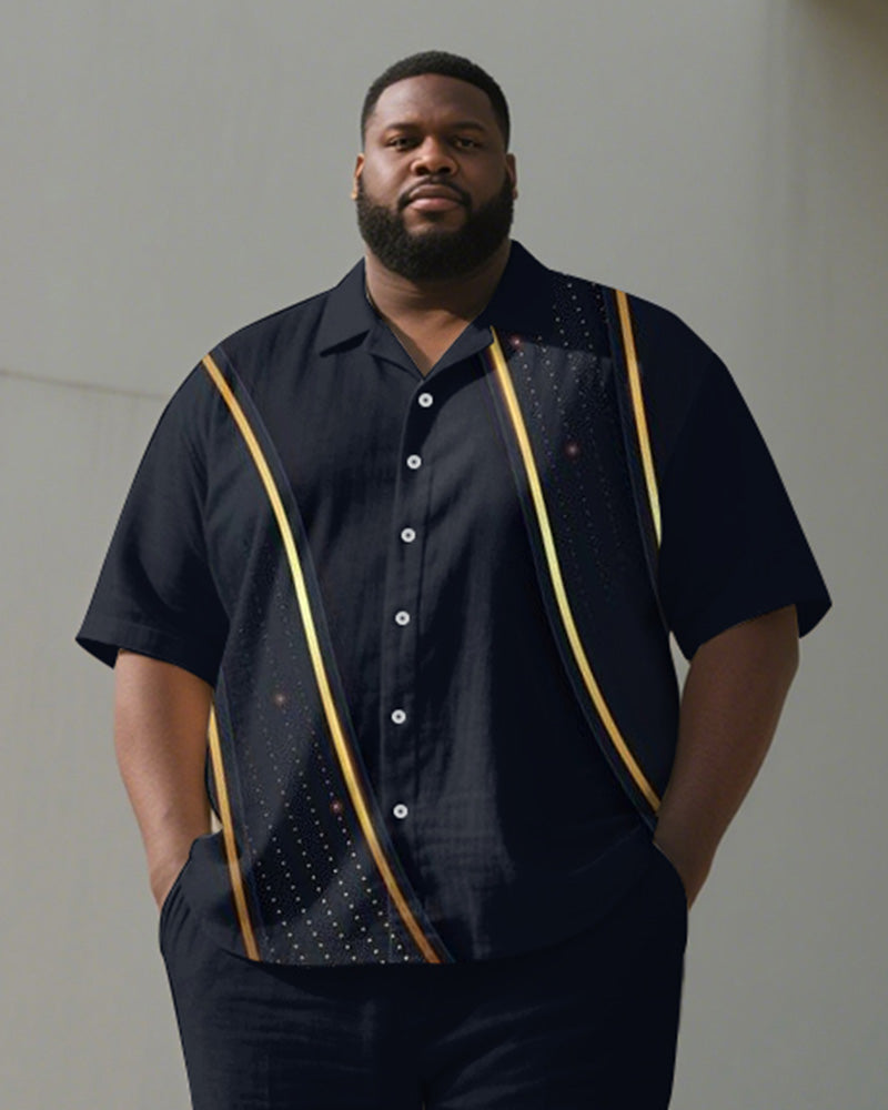 Men's Plus Size Blue Polo Dot Line Geometric Print Short Sleeve Shirt Trousers Suit