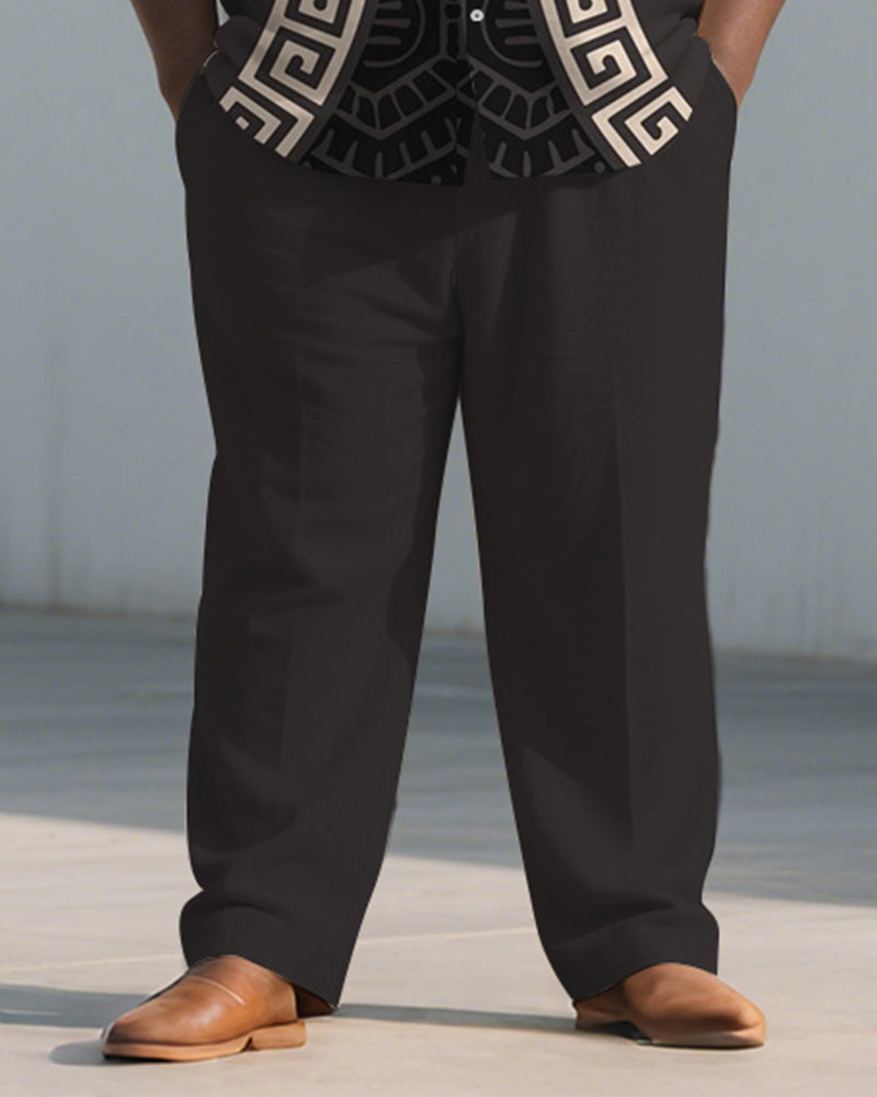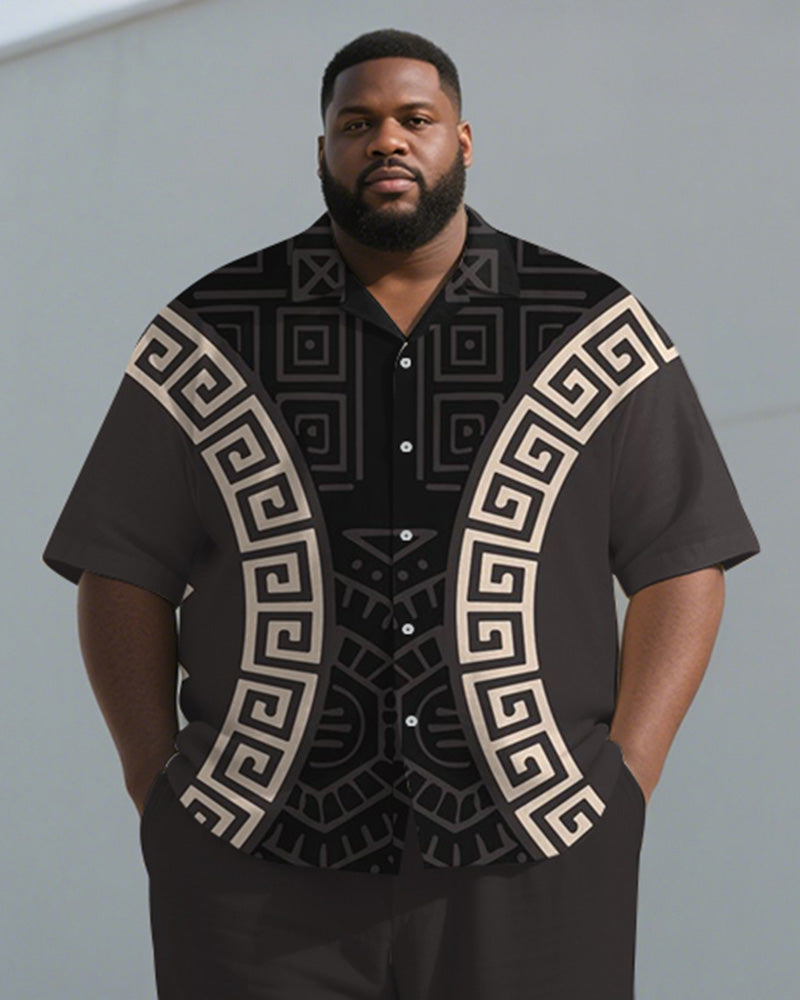 Men's Plus Size Brown Geometric Print Short Sleeve Shirt Trousers Suit