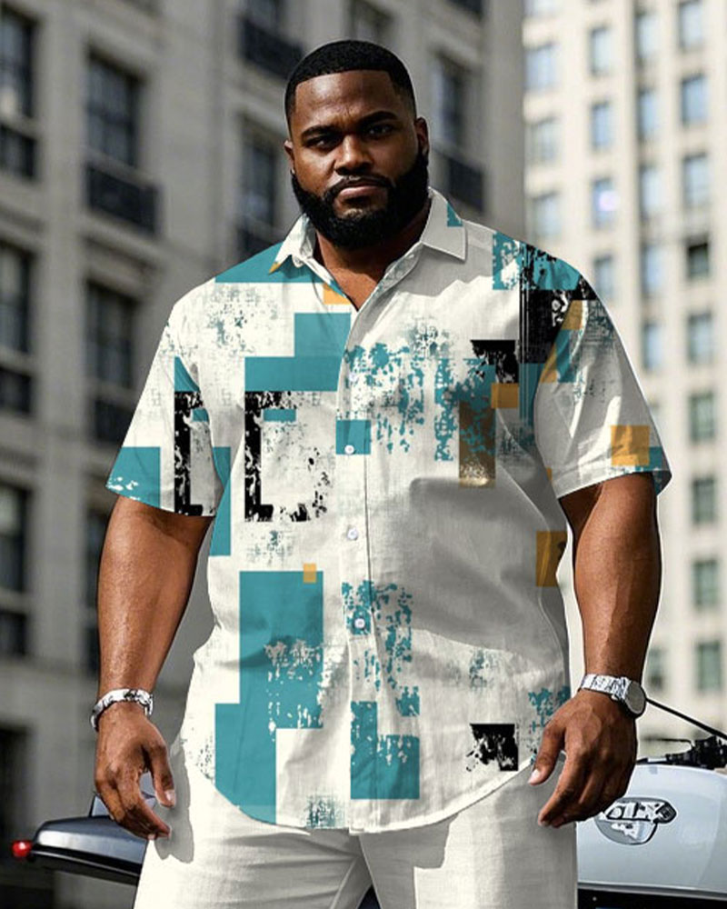Men's Plus Size Business Apricot Distinctive Shedding Effect Printed Daily Casual Short Sleeve Shirt Trousers Suit