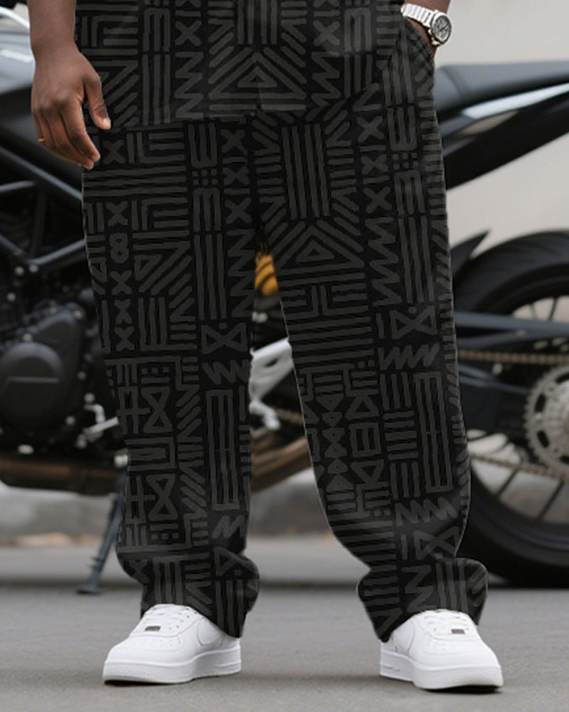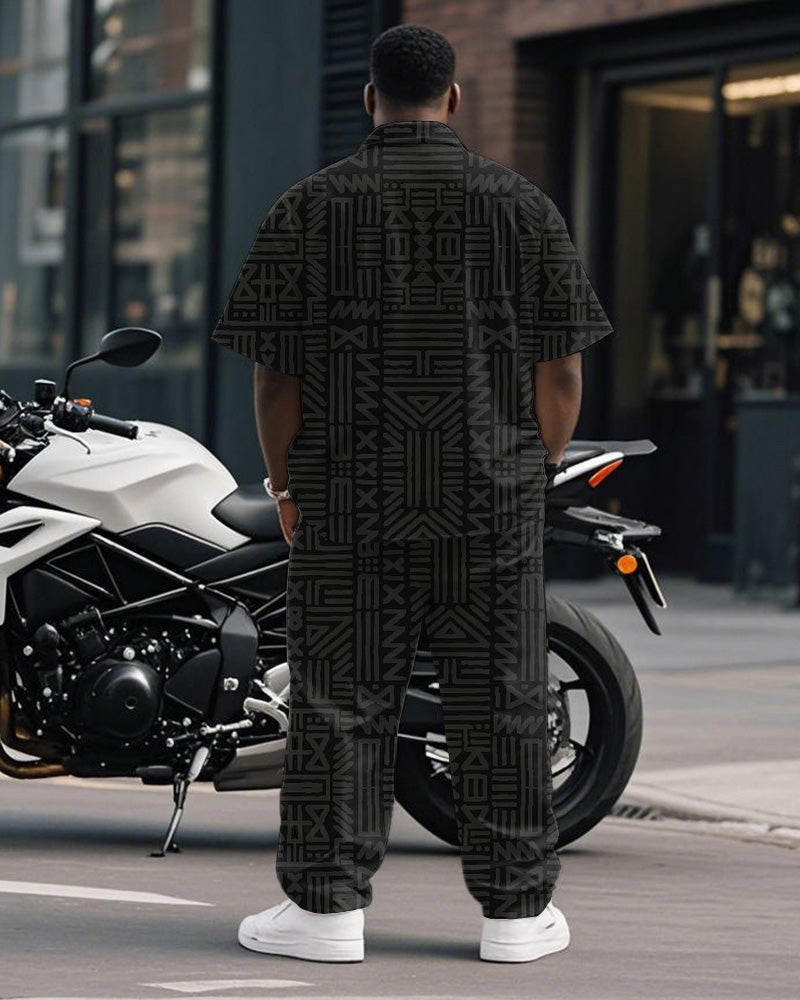 Men's Plus Size Business Black Dark Pattern Geometric Print Short Sleeve Shirt Trousers Suit