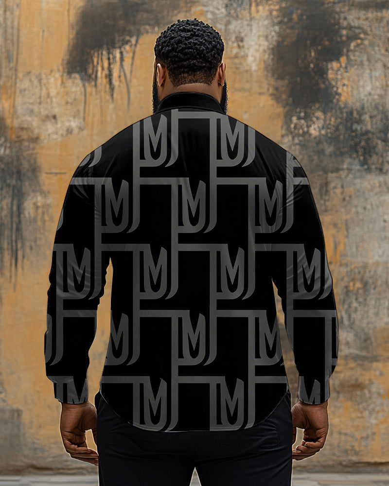 Crafted for the plus-size man, this business long-sleeve shirt is all about style. The black and gray tone is calm and atmospheric, and the mysterious geometric M print is staggered to break the monotony. The high-quality fabric is stiff and wrinkle-resistant, making it comfortable to wear. The long-sleeve design is suitable for all kinds of business scenarios, easily showing men's competent aura.