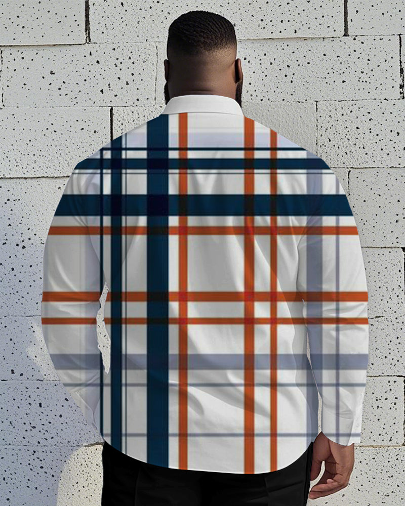 Men's Plus Size Business Blue Contrast Check Geometric Print Long Sleeve Shirt