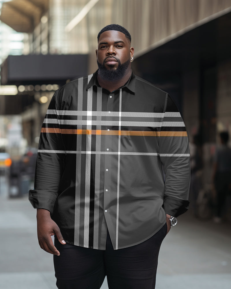 Men's Plus Size Business Casual Classic Plaid Lapel Long Sleeve Shirt