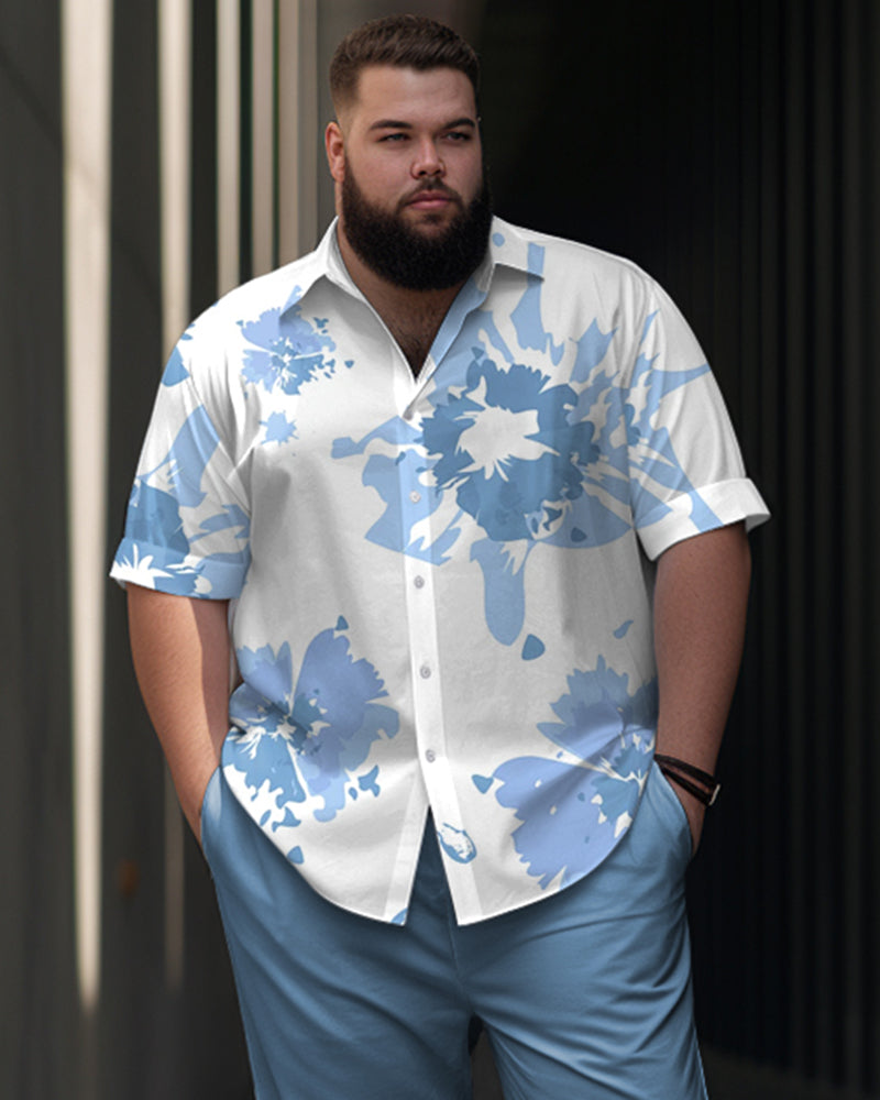 Men's Plus Size Business Casual Flower Print Short Sleeve Shirt Trousers Suit