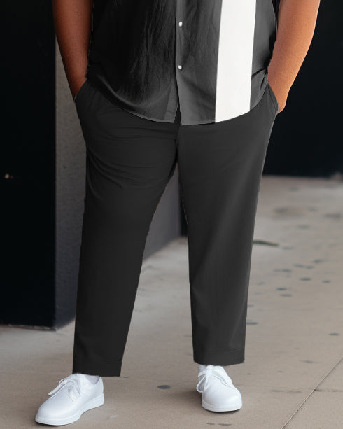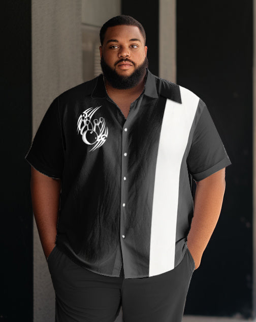 Men's Plus Size Business Casual Sports Graphic Bowling Short Sleeve Shirt Pants Set