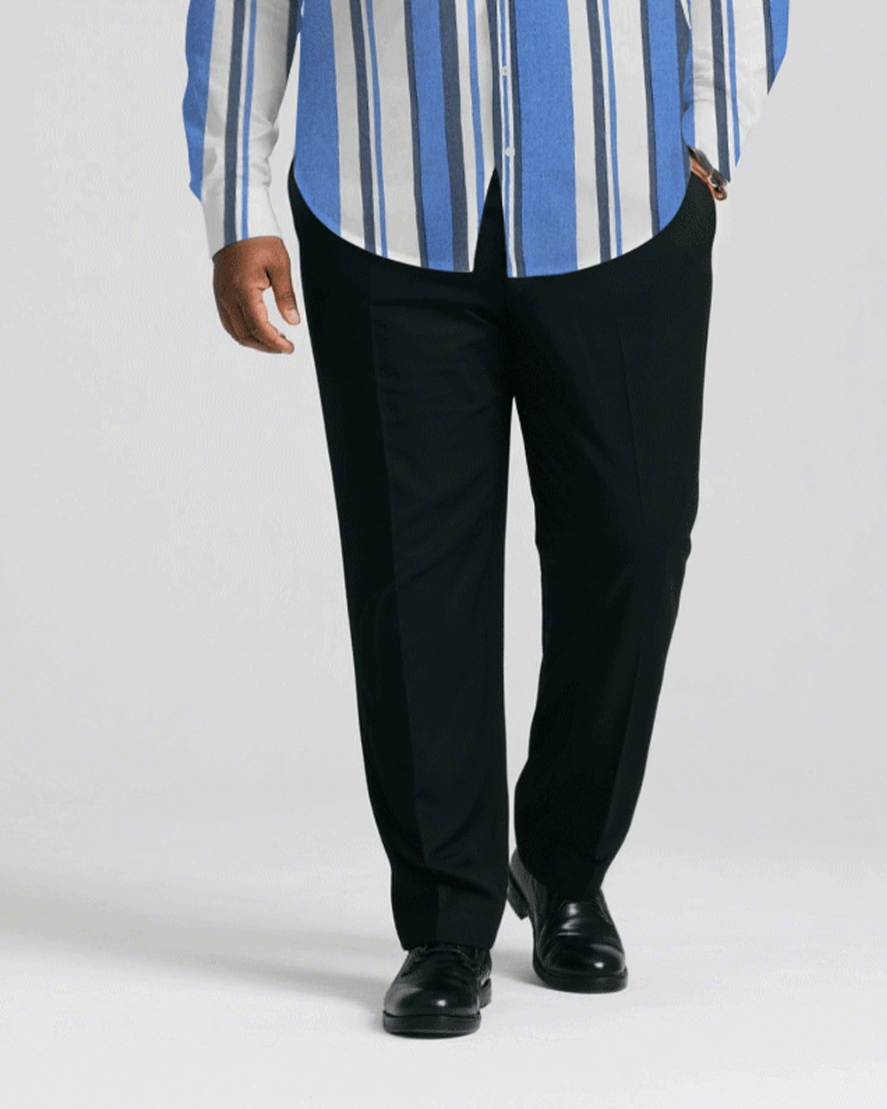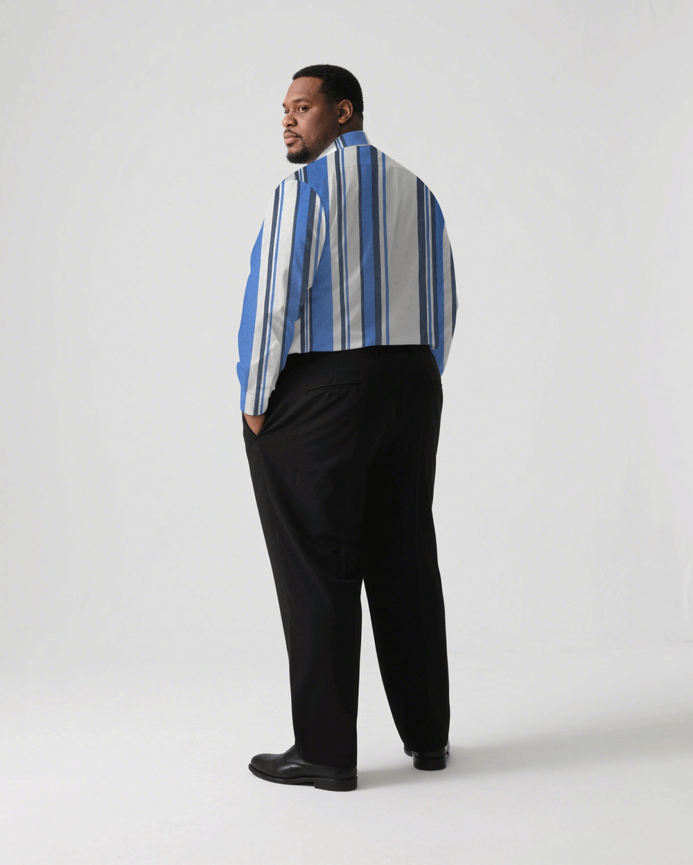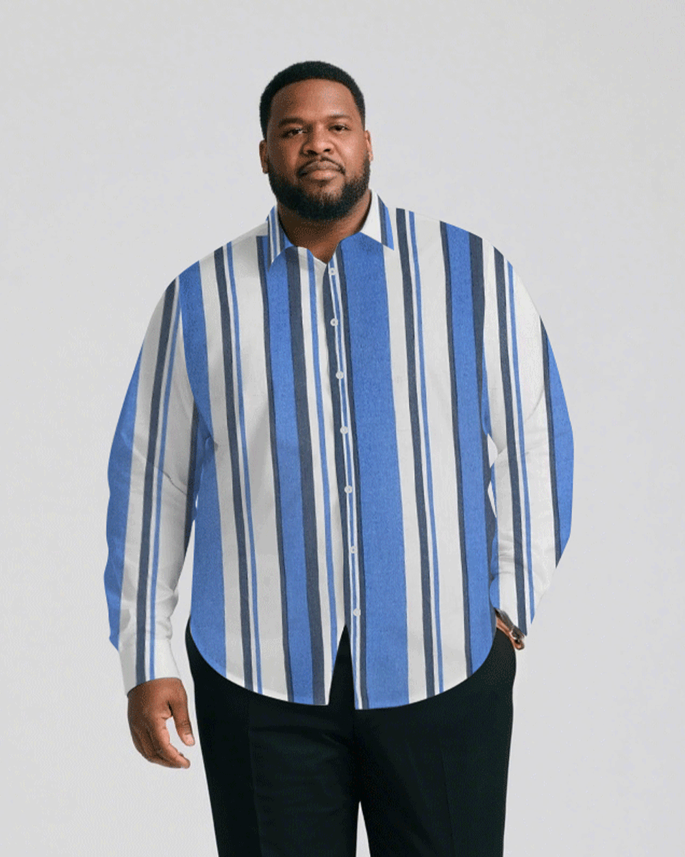 Men's Plus Size Business Classic Blue Striped Print Long Sleeve Shirt Trousers Suit