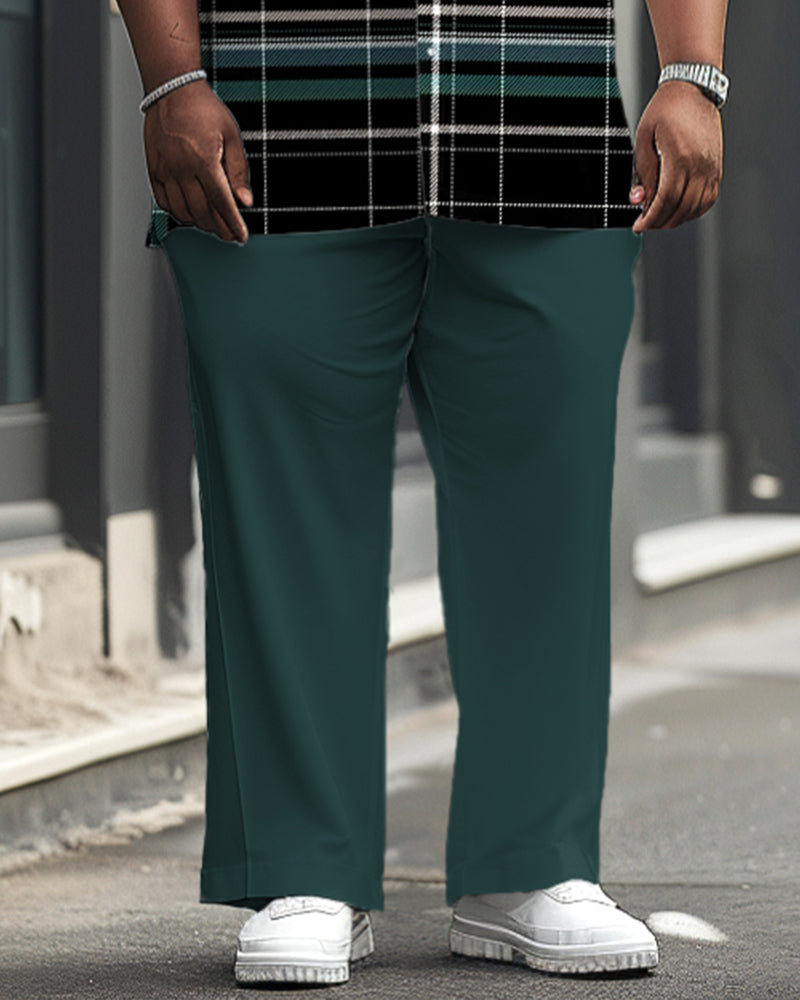 Men's Plus Size Business Classic Check Fabric Short Sleeve Shirt Suit