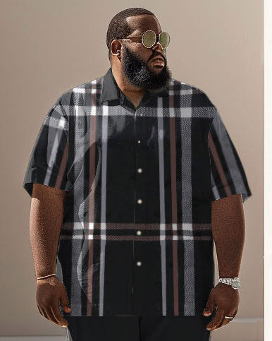 Men's Plus Size Business Classic Check Print Short Sleeve Shirt Suit
