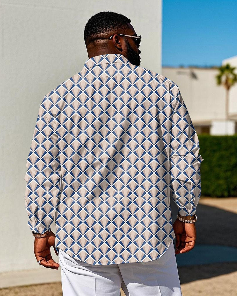 Men's Plus Size Business Geometric Full Print Long Sleeve Shirt