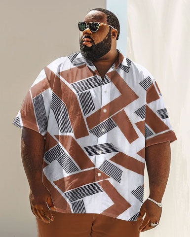 Men's Plus Size Business Geometric Print Short Sleeve Shirt Suit