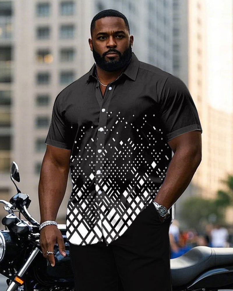 Men's Plus Size Business Gradient Geometric Print Short Sleeve Shirt Trousers Suit
