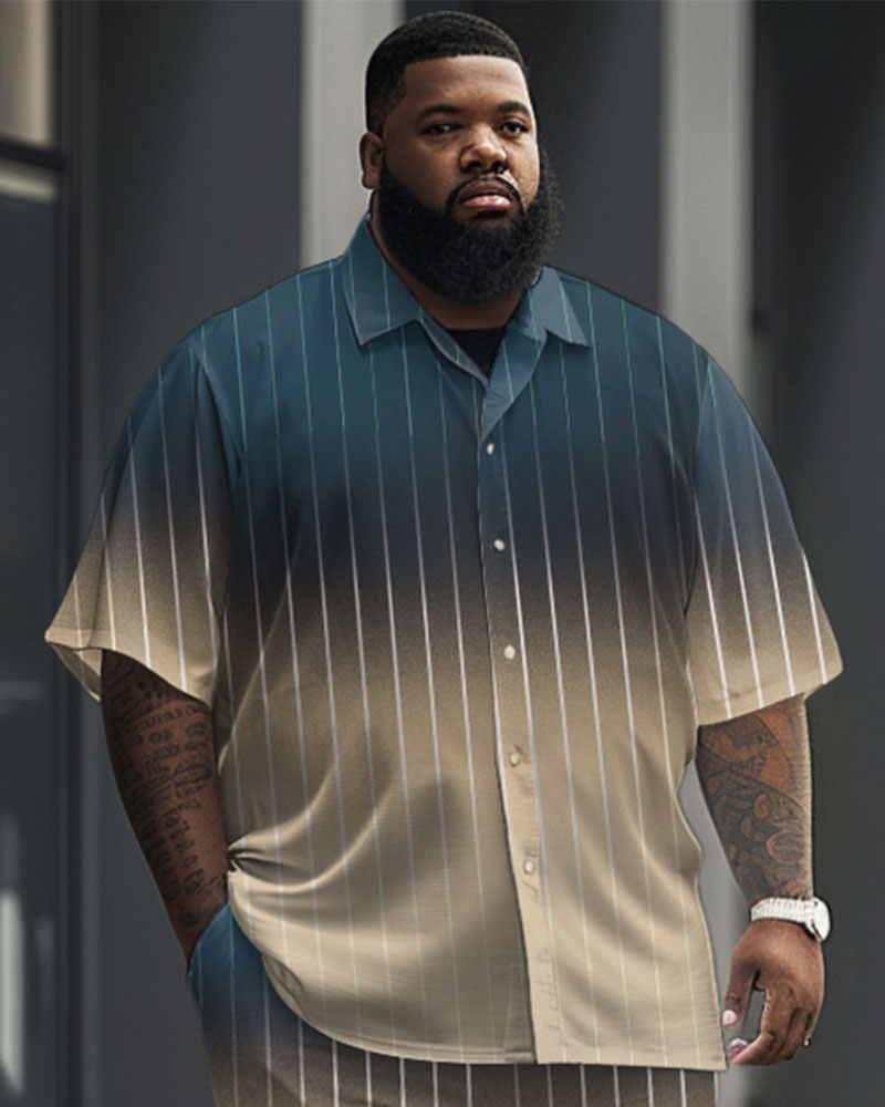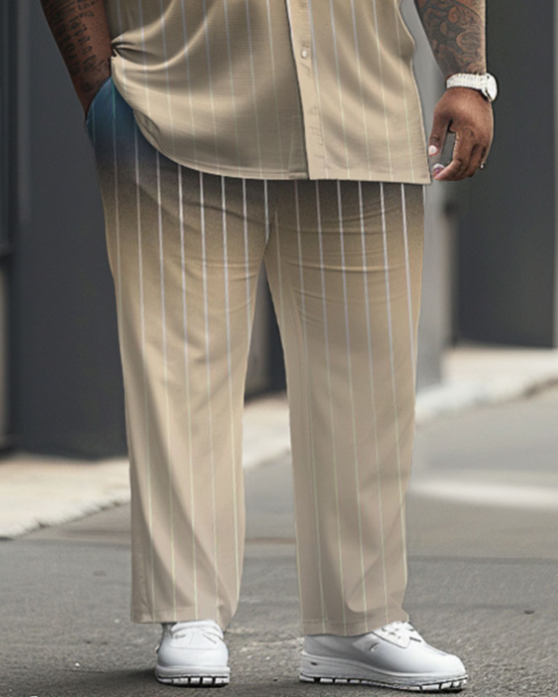 Elevate your professional wardrobe with our big guy's set, showcasing a striking blue and khaki . The sleek striped design adds a touch of contemporary flair, while the vertical stripes create a flattering silhouette. This versatile set will effortlessly take you from the office to evening events.
