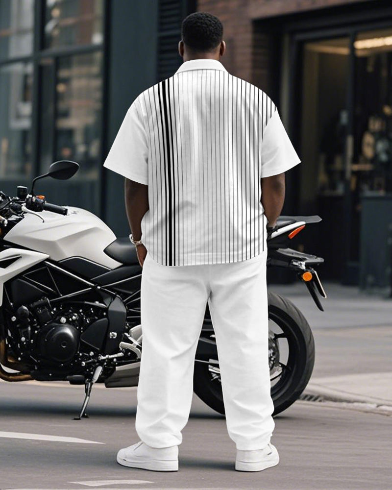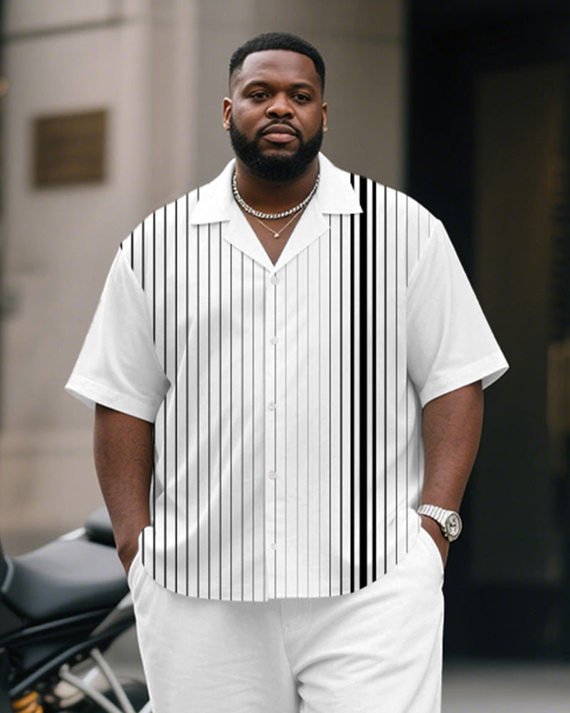 Men's Plus Size Business Gray Gradient Stripe Print Short Sleeve Shirt Trousers Suit